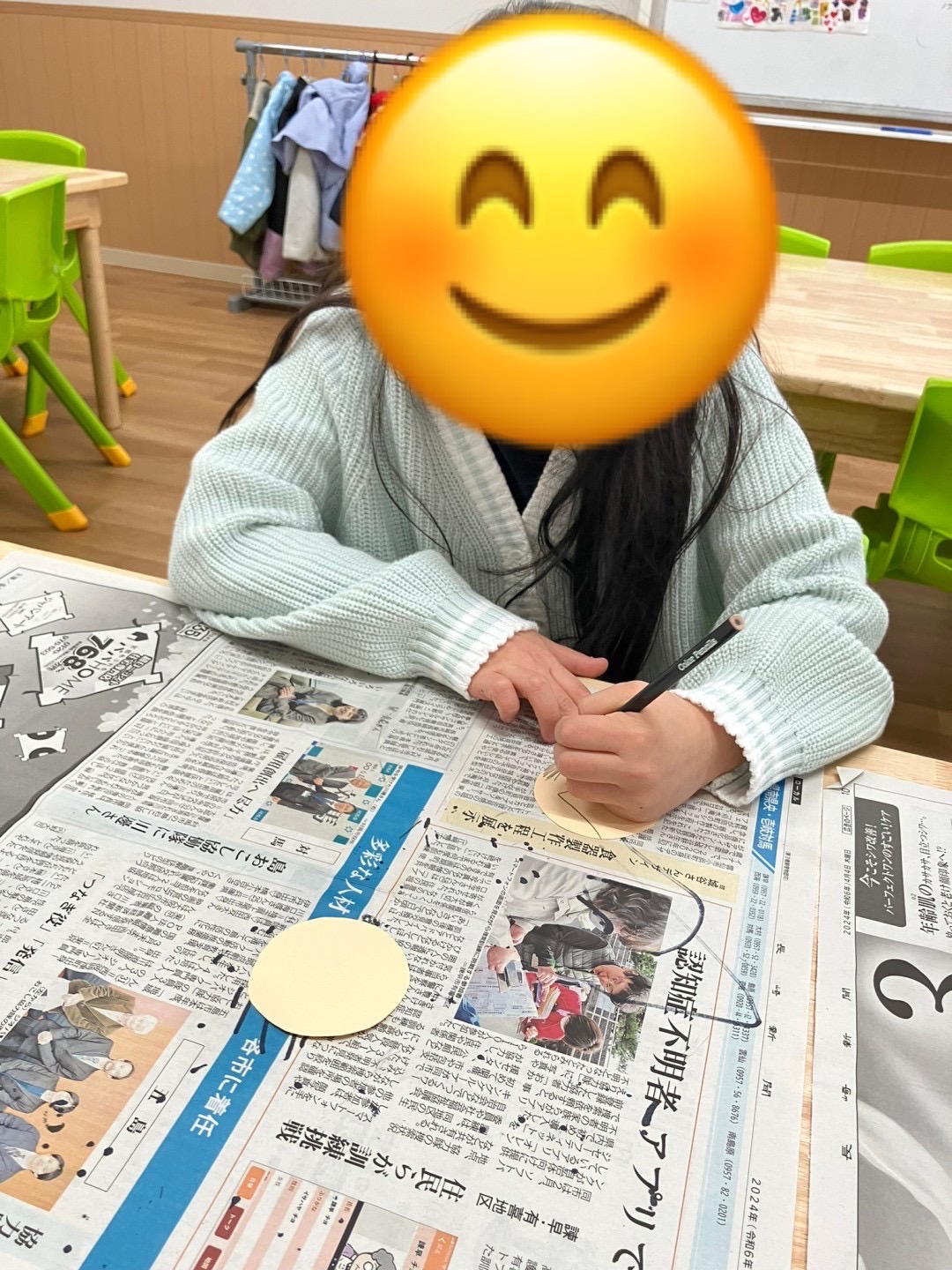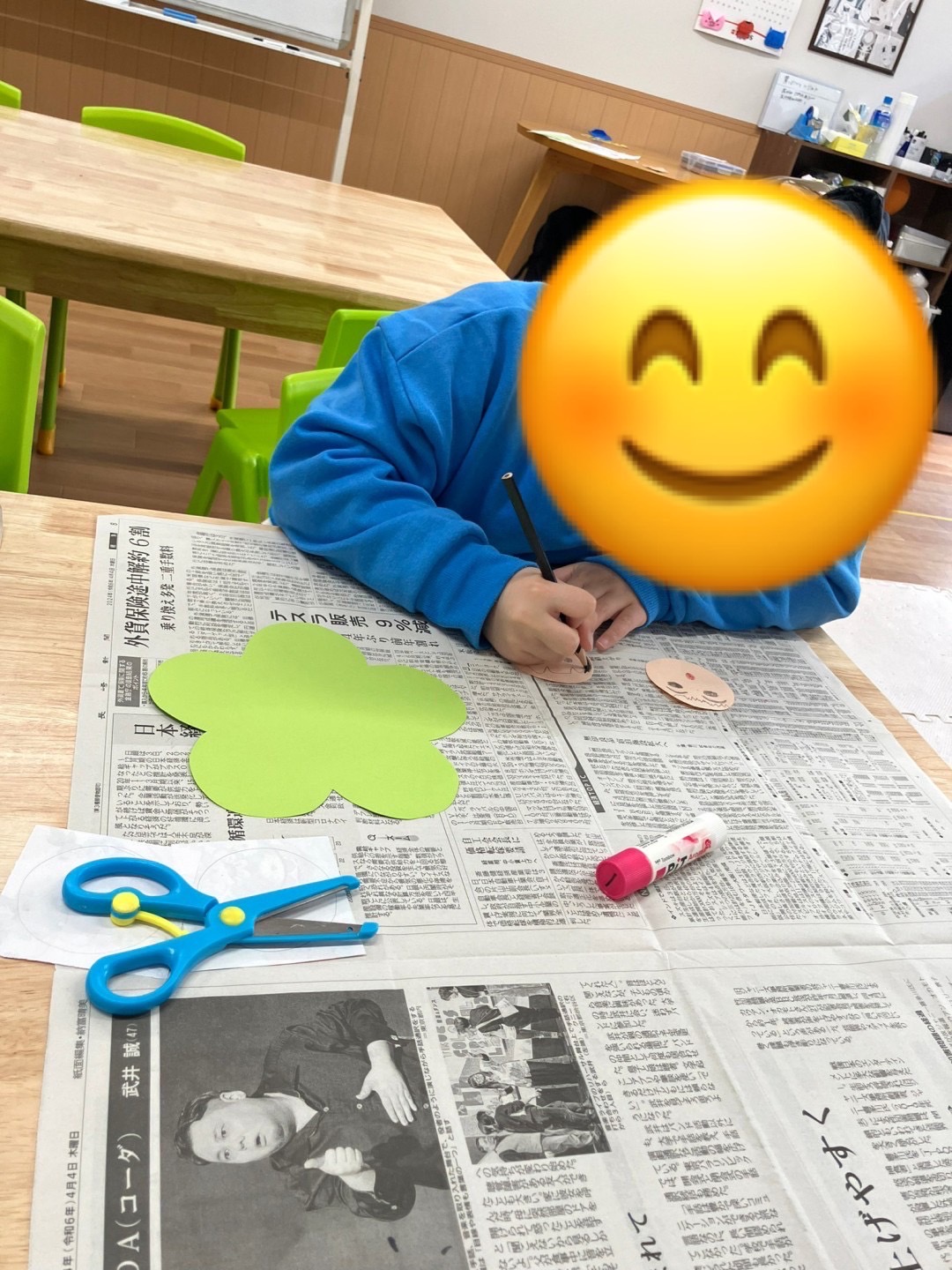 自分で顔を描いたり、着物の部分を千代紙を切って貼ったりしながら完成させることができました✨