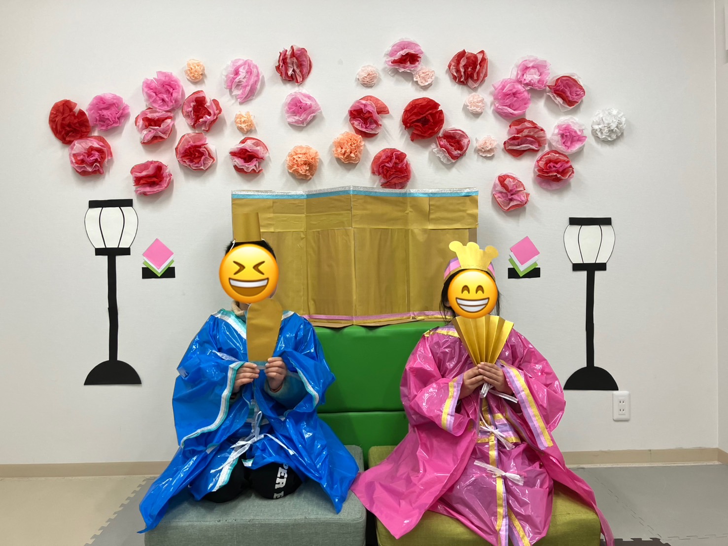 お内裏様とお雛様の衣装を纏い、雛壇にのって写真撮影を行なっております🌸