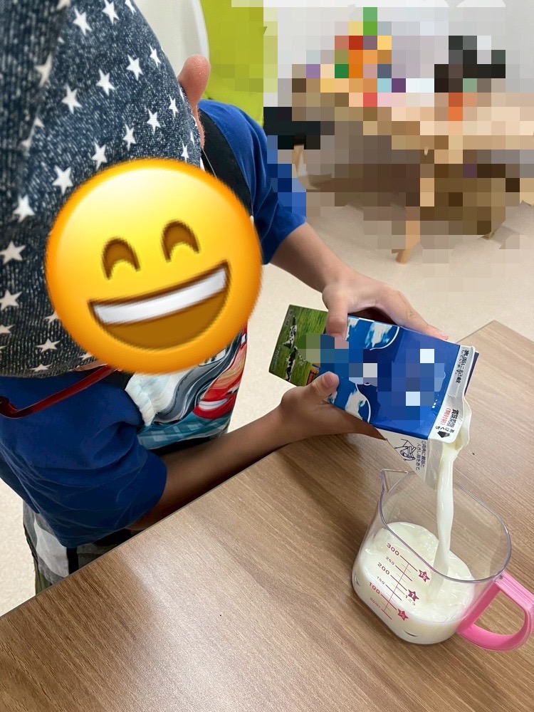 役割を分担して牛乳を測ったり、混ぜるなど協力してスムーズに完成させることができています👏
