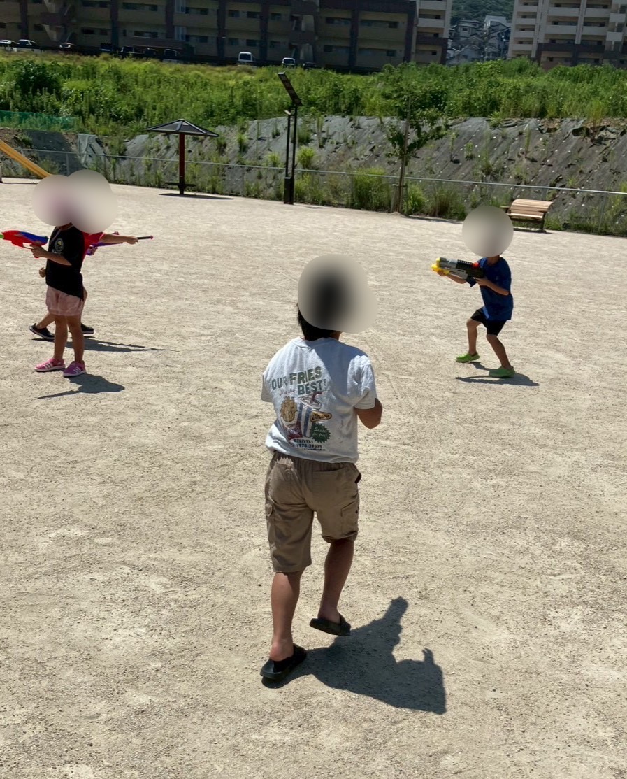 近隣の公園で水鉄砲や水風船で遊んでおります✨