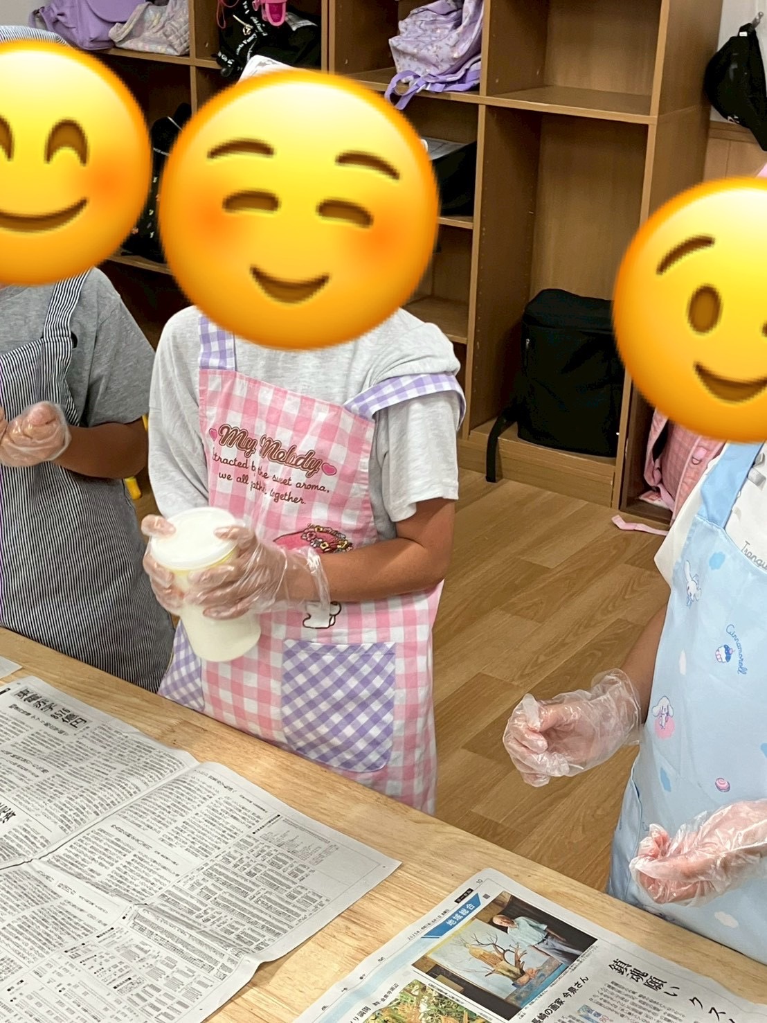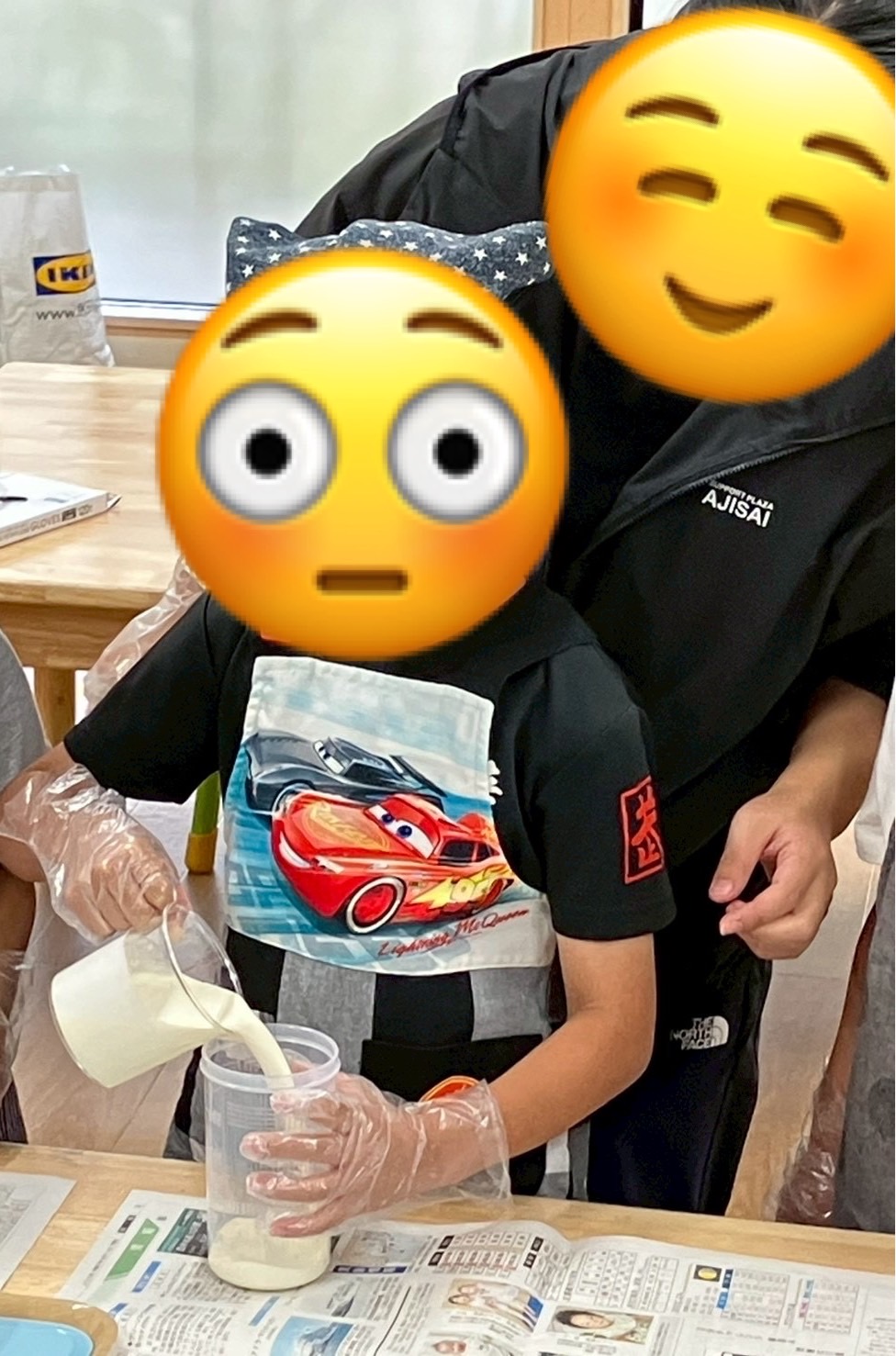 生クリームを振ってバターができるの初めは不安な様子でしたが、振っていくと徐々に音が変わっていき興味津々になっているようでした😲