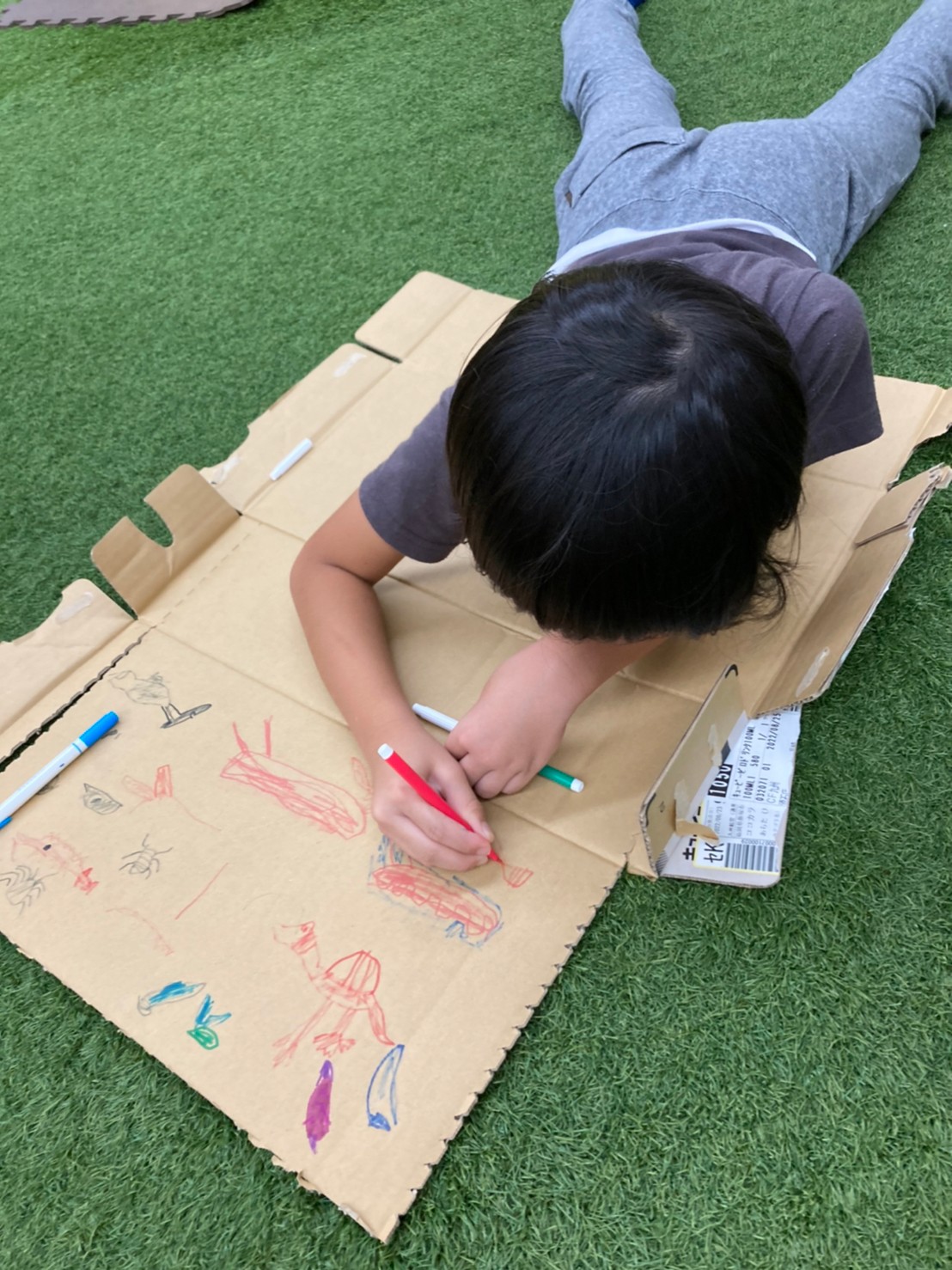 段ボールを使って自分たちが好きなものを作って遊びました😊