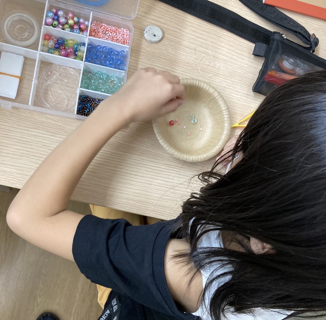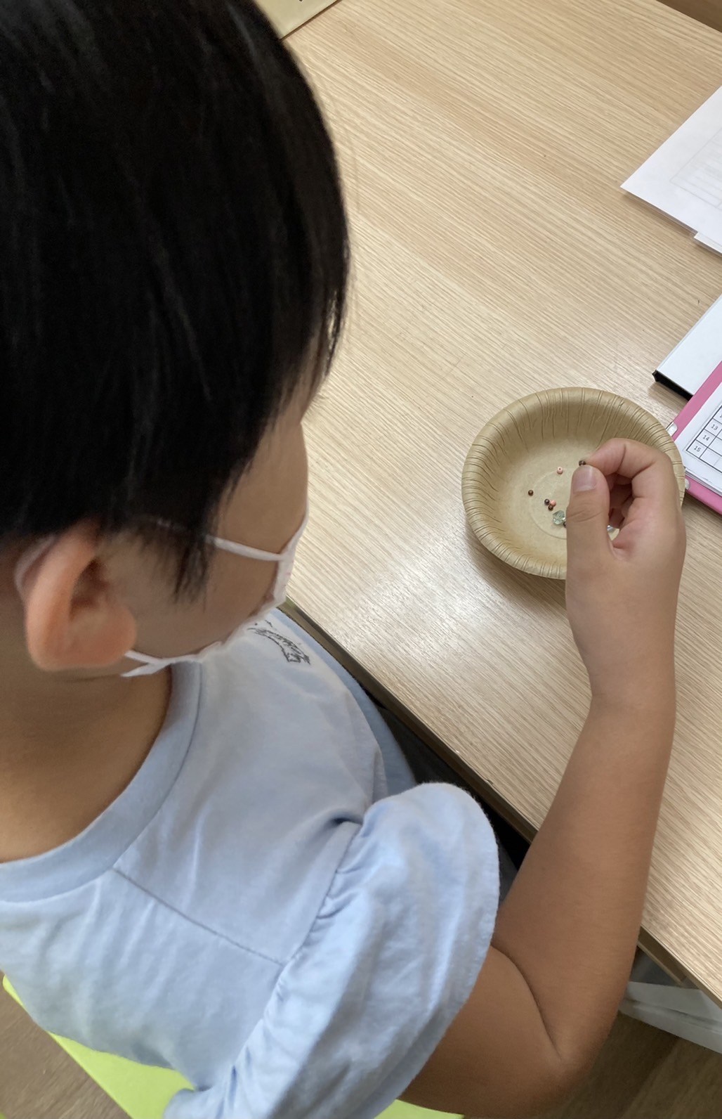 今回の療育では指先を一番使うビーズを使って微細運動を鍛えながら