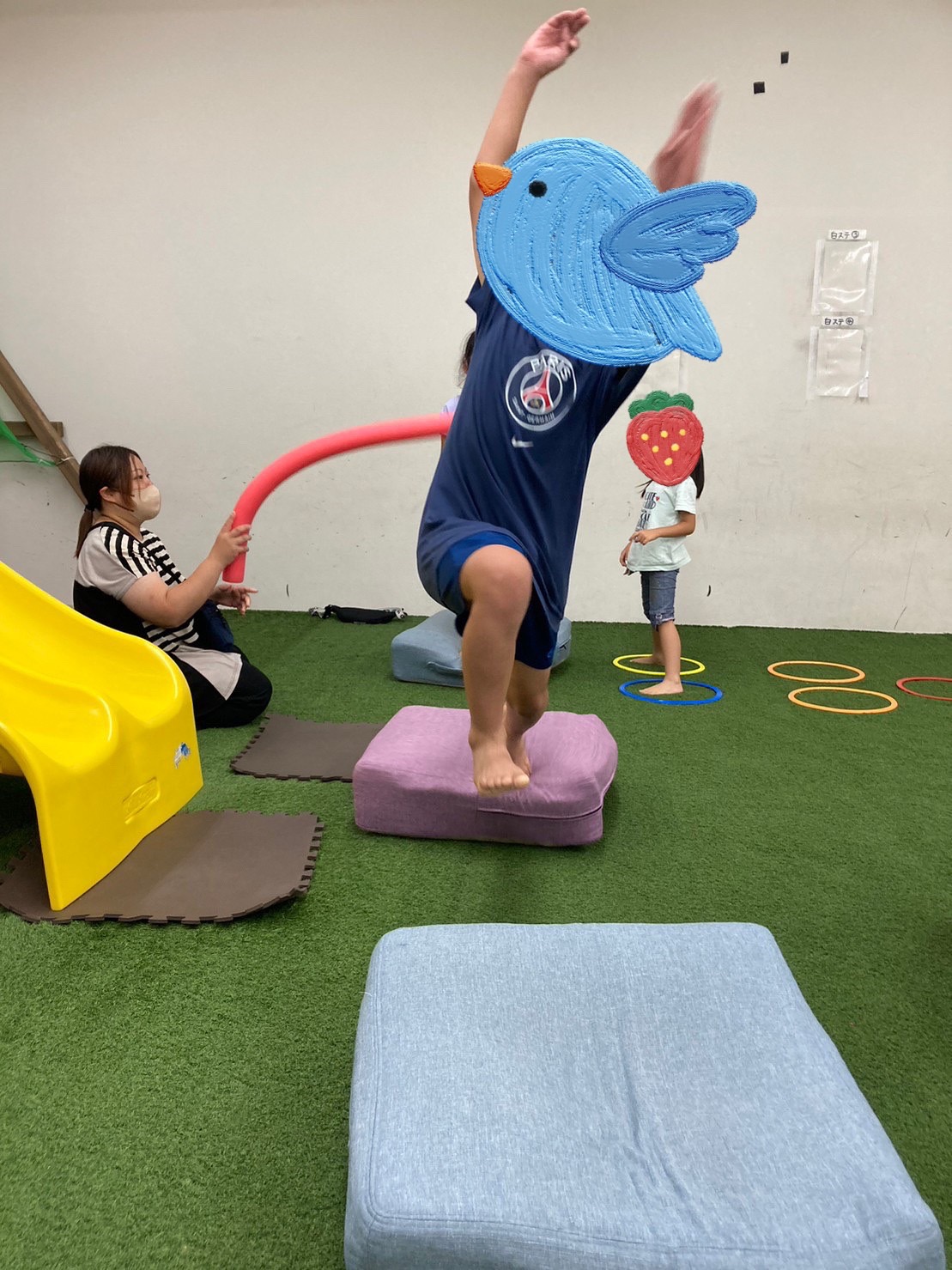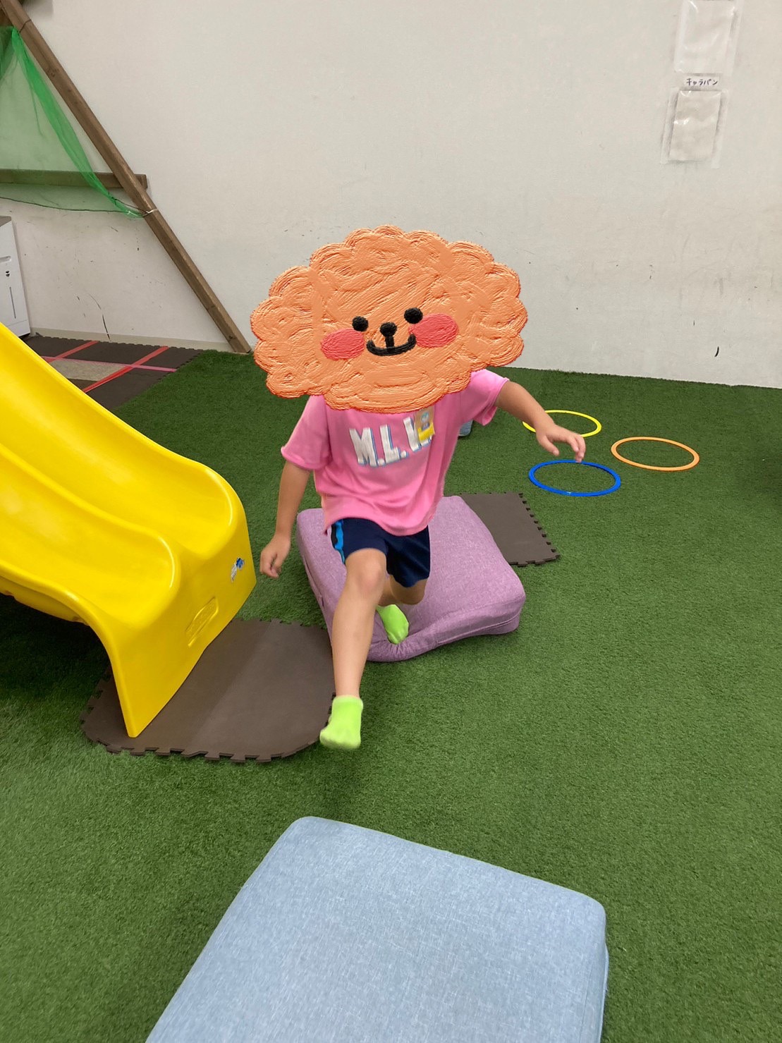 本日の活動はサーキットを行いました!バランスを取りながら平均台を移動して、ケンケンパで片脚飛びをしたり、トランポリンを使ってジャンプしたり、と沢山身体を使って頑張っていました😊