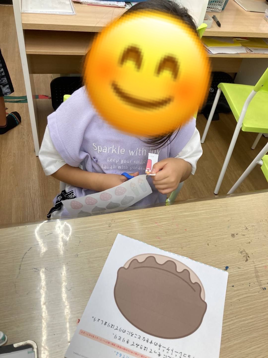 中には小さいパーツに苦戦する子もいましたがみんな上手にハサミとのりを使うことが出来ました👏