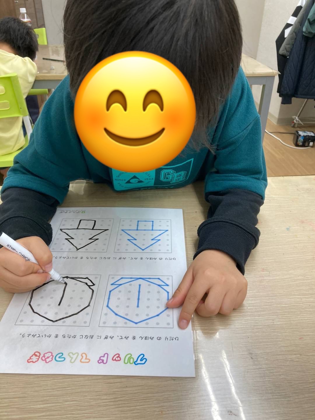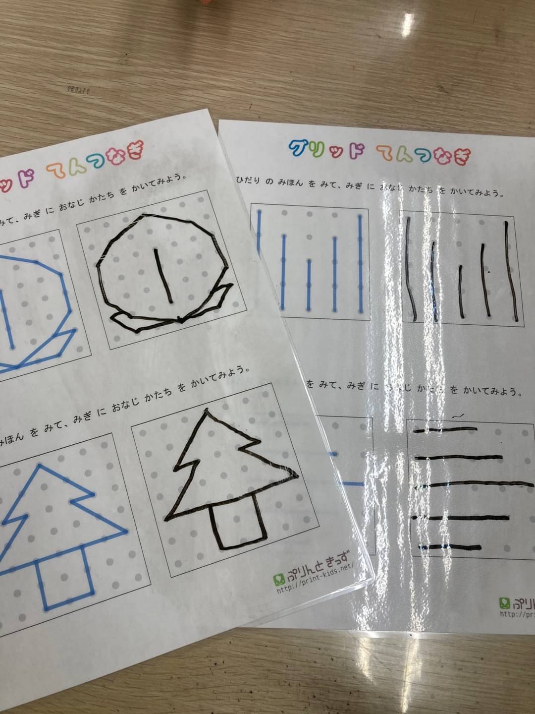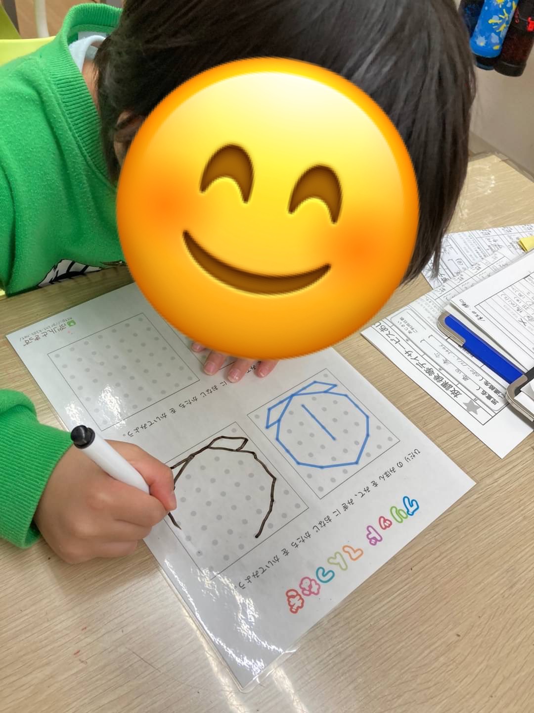 桃の形が難しかった為、職員と一緒に点の数を数えながら取り組んでいます!