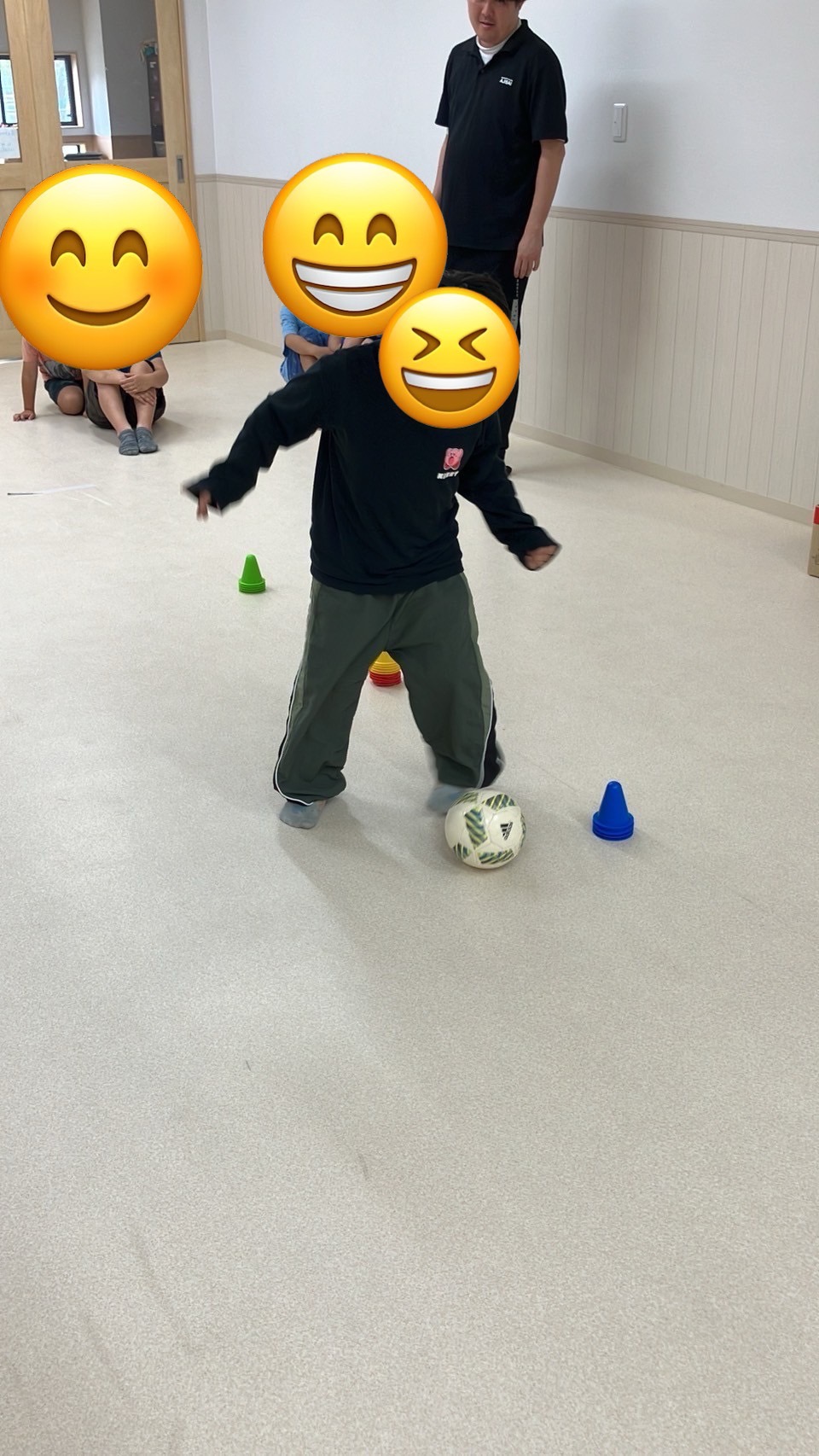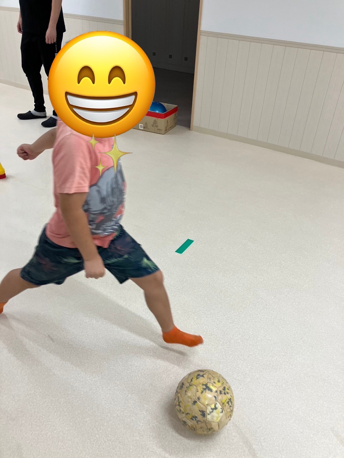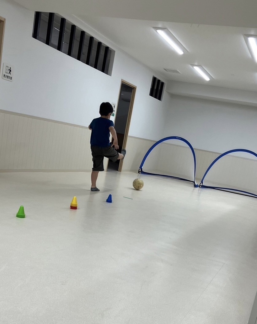 本日は室内にてサッカー練習を療育の中で行っます😊