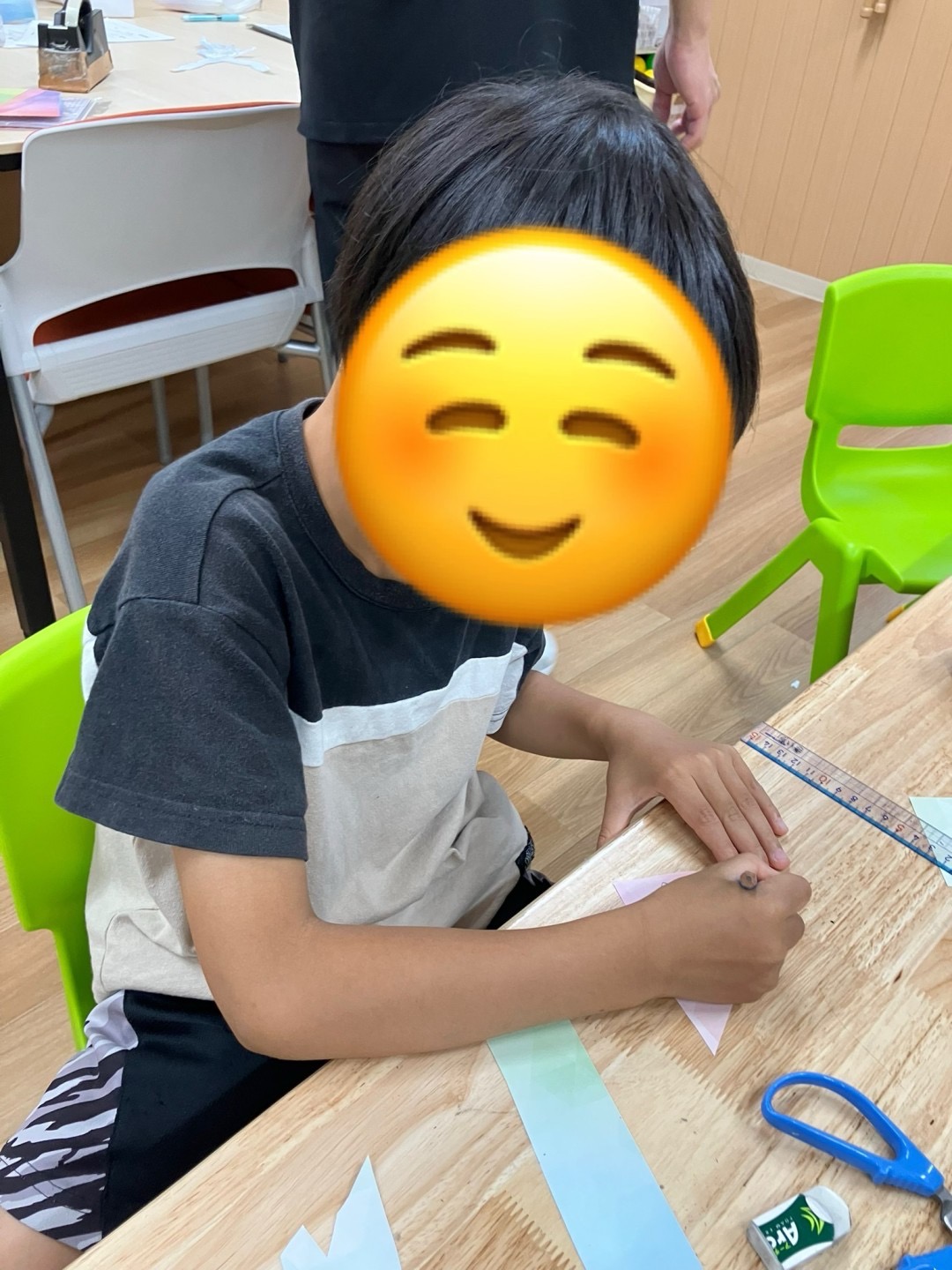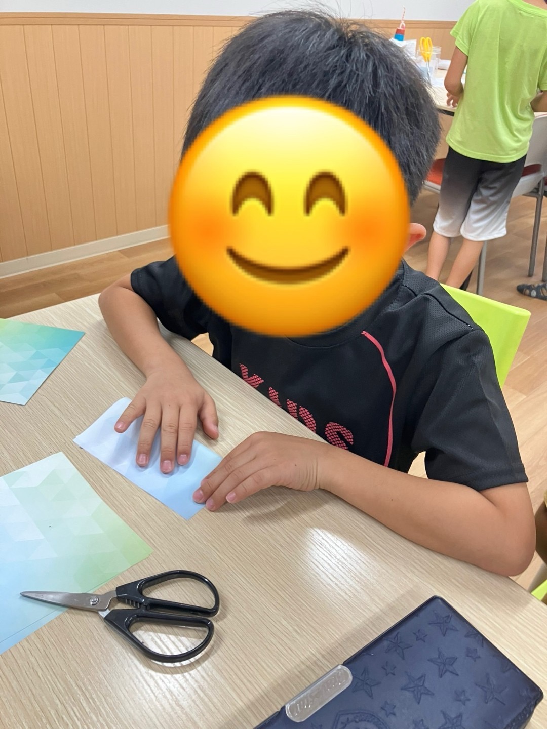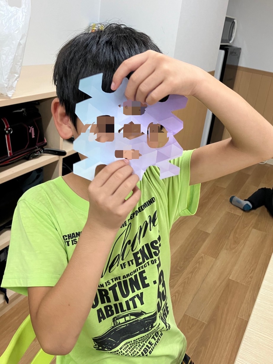 何を作るか悩んでいるお子様もいらっしゃいましたが、七夕飾り定番の「提灯」「貝がら」「輪つなぎ」の作り方を伝えると集中して製作活動に取り組まれていました。キャラクターを描いたり切り絵など、オリジナリティな作品も多く見られております。