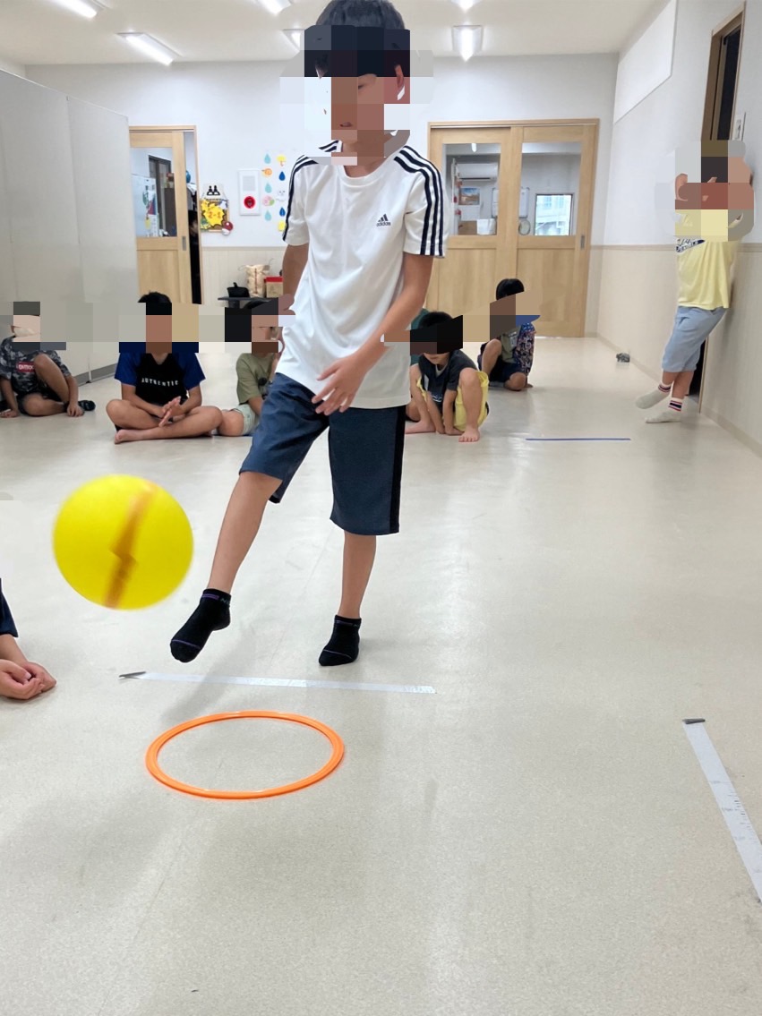 うまくフープの中に入れるのは難しかったですが、繰り返し行い点数を獲得できた時は万歳で喜ぶ姿が見られました😄🙌