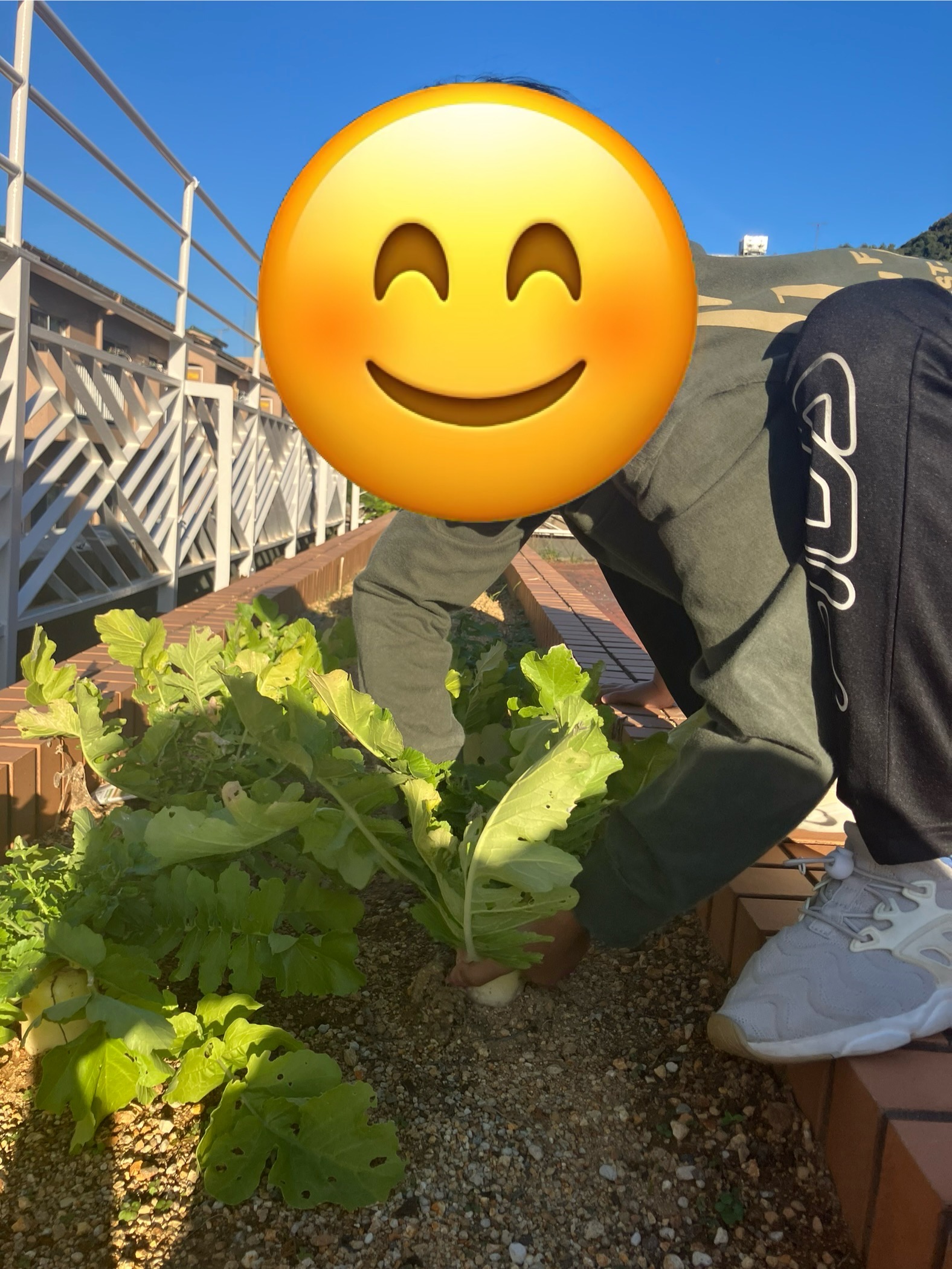 今回は屋上の畑で育てていた、育ちの良い大根を収穫しました✨