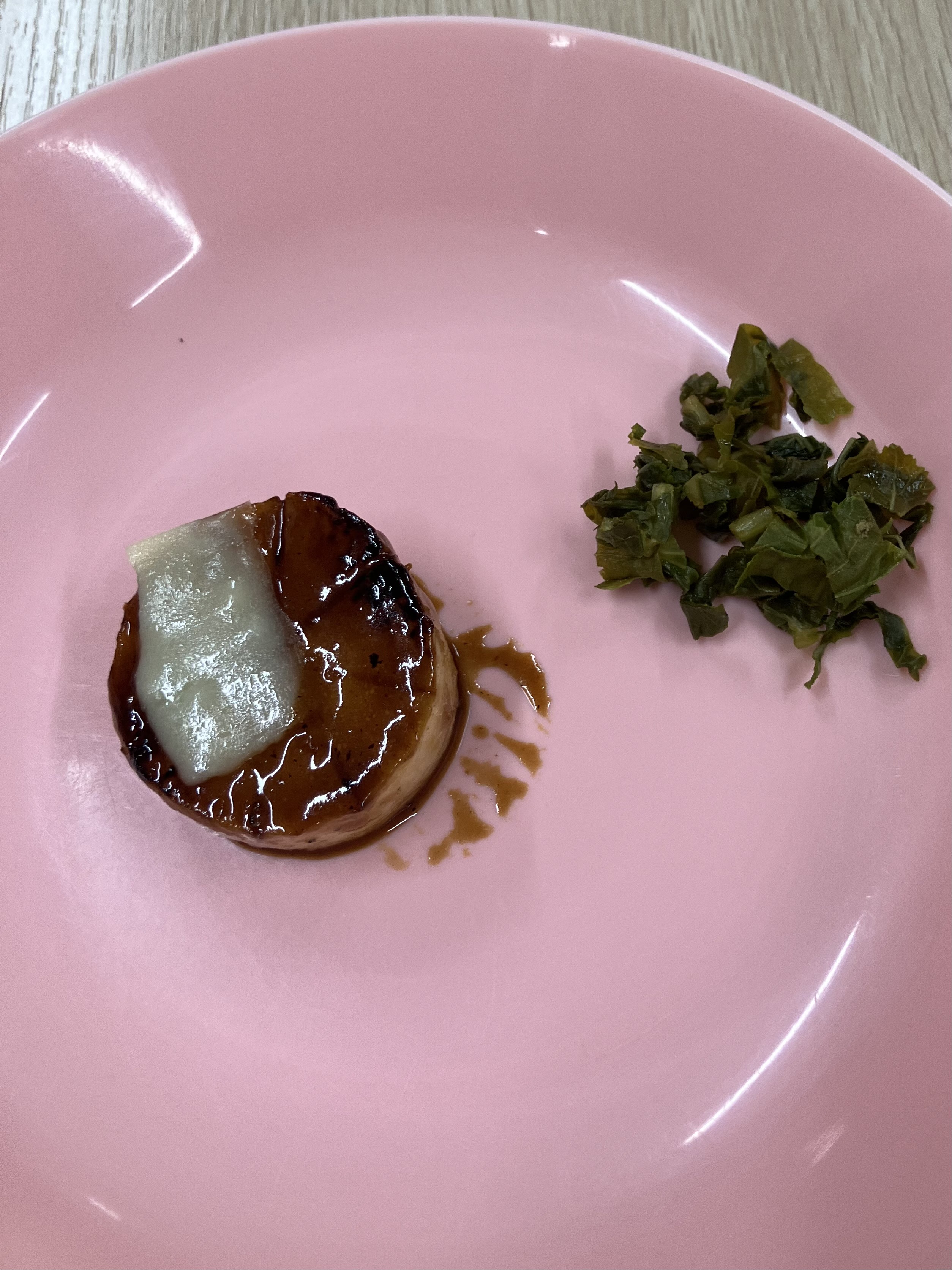 収穫後は大根を包丁で切り、葉っぱでおひたしを!大根で大根ステーキを作って食べました。