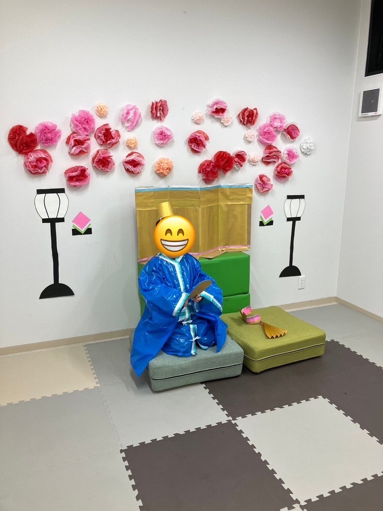 お雛様とお内裏様の手作りコスチュームを着て、写真撮影を行いました