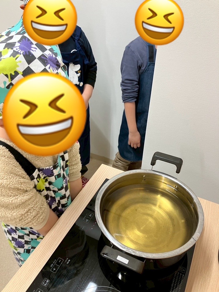 きつねとスープを子どもたちに作ってもらい、また各自で麺を茹でてもらいました!