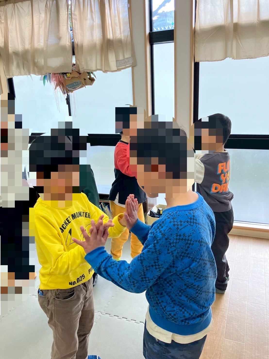 本日は、「リトミック」を行っております⭐️リトミックとは、音楽やリズムに合わせて指定された動きを行うというリズム遊びです。