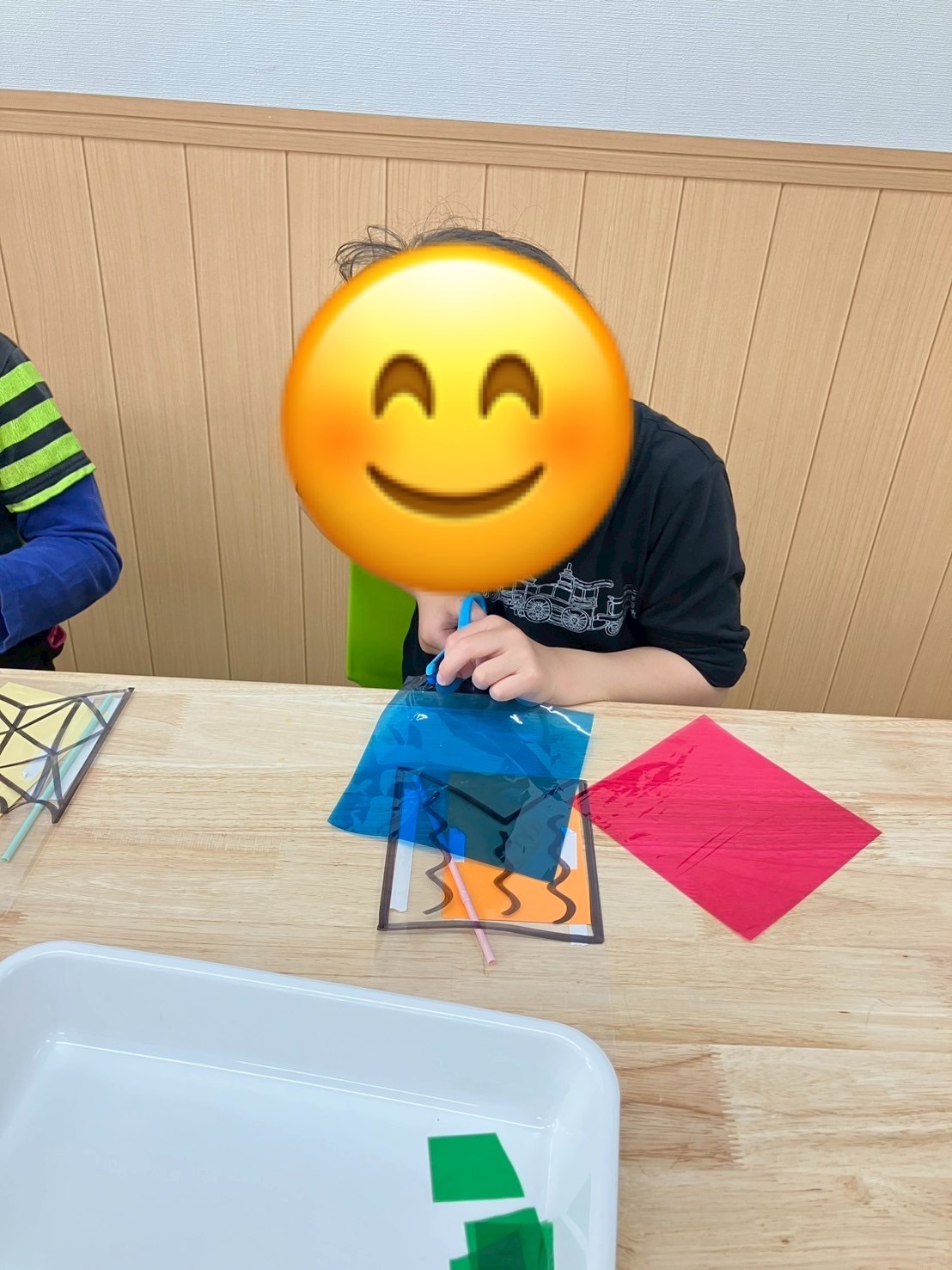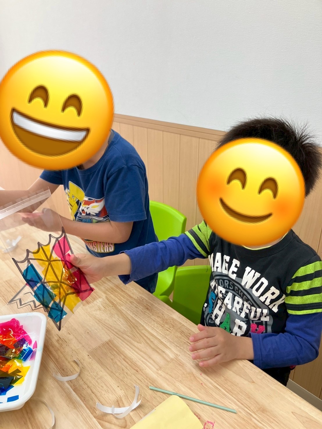 ステンドグラス風鯉のぼりで、写真フィルムにカラーセロファンを貼りオリジナルの鯉のぼりを作成しております🎏