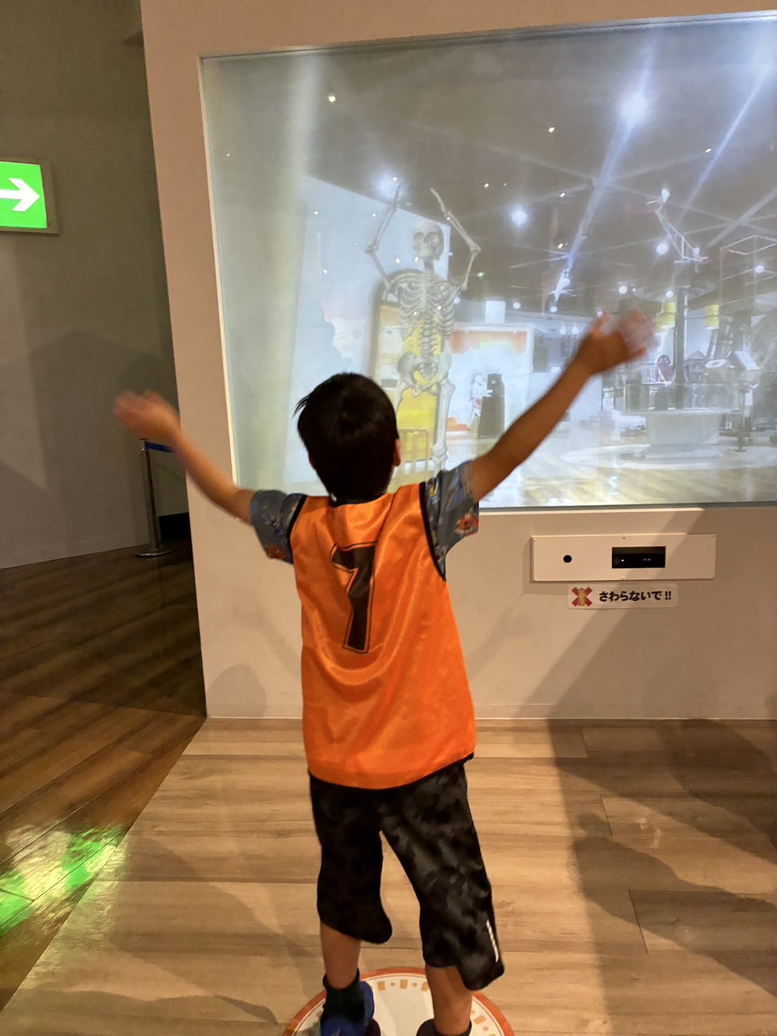 自分の骨を見る体験をしたり、地震の体験やスペースシャトル体験などたくさんの体験コーナーや、