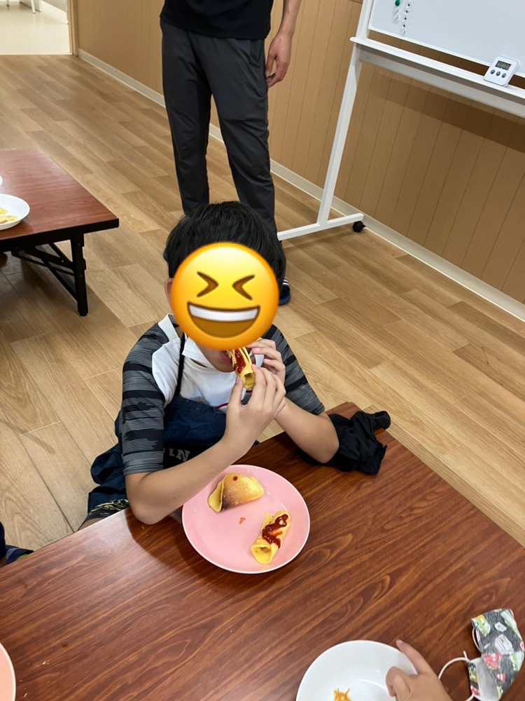 ホットケーキミックスを使い、フライパンで焼くだけの簡単なものを作りました👏みんな上手に焼き上げる事が出来ており、美味しく食べていました😆🎶