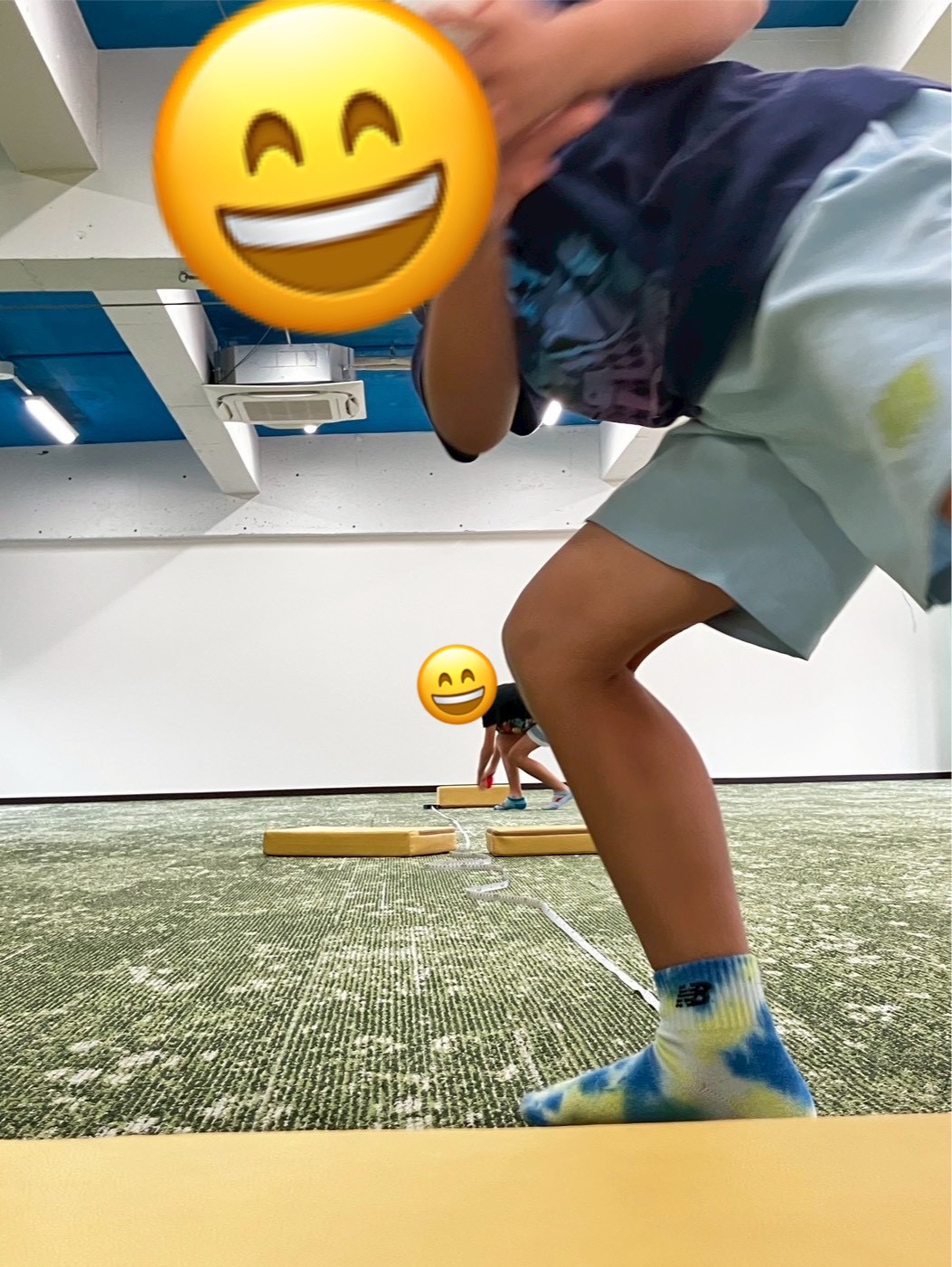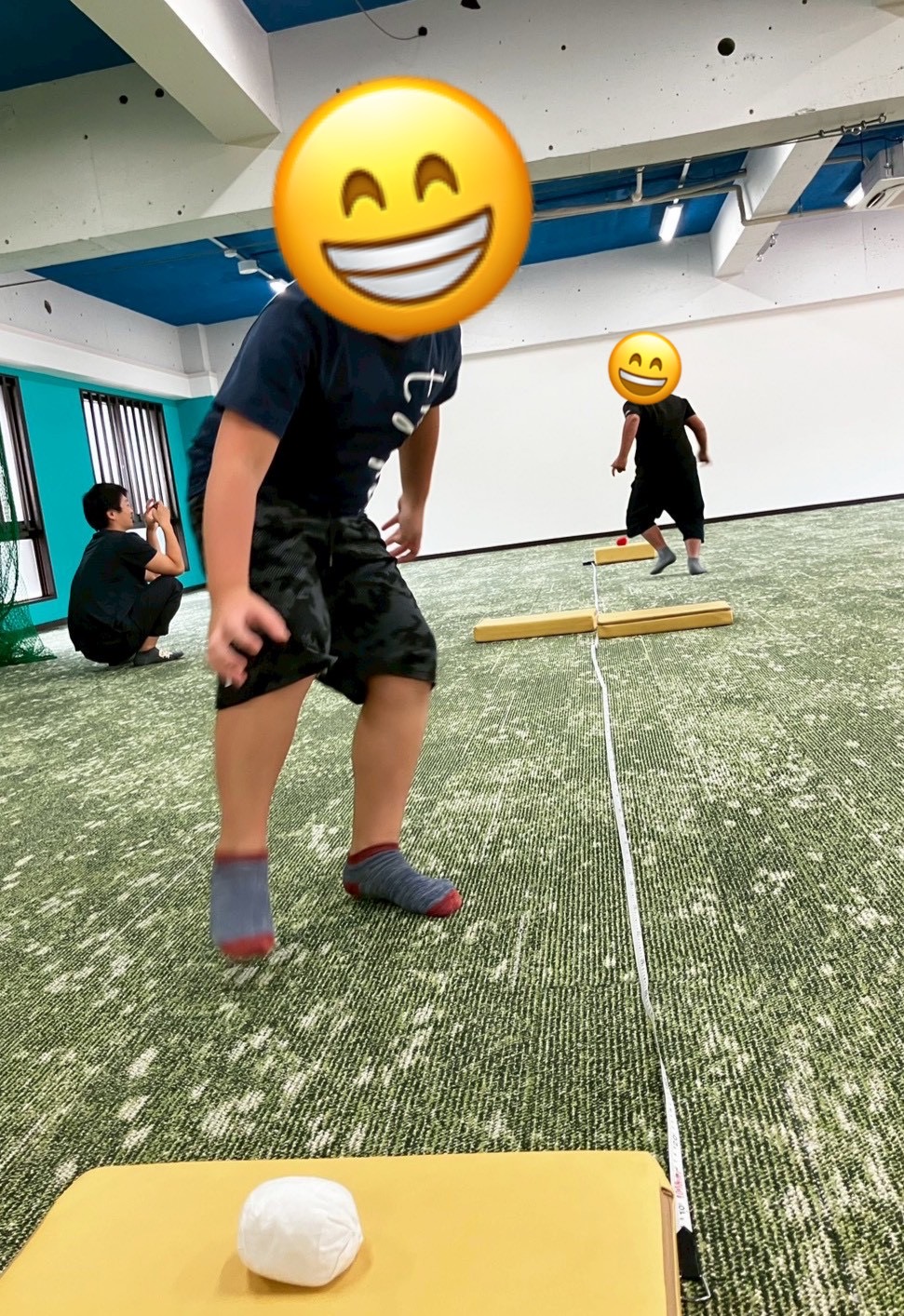 スタートの音を聞いたらターゲットまで走り、ターゲットを手に取りスタートの位置まで戻る、という反応あそびを行いました✨