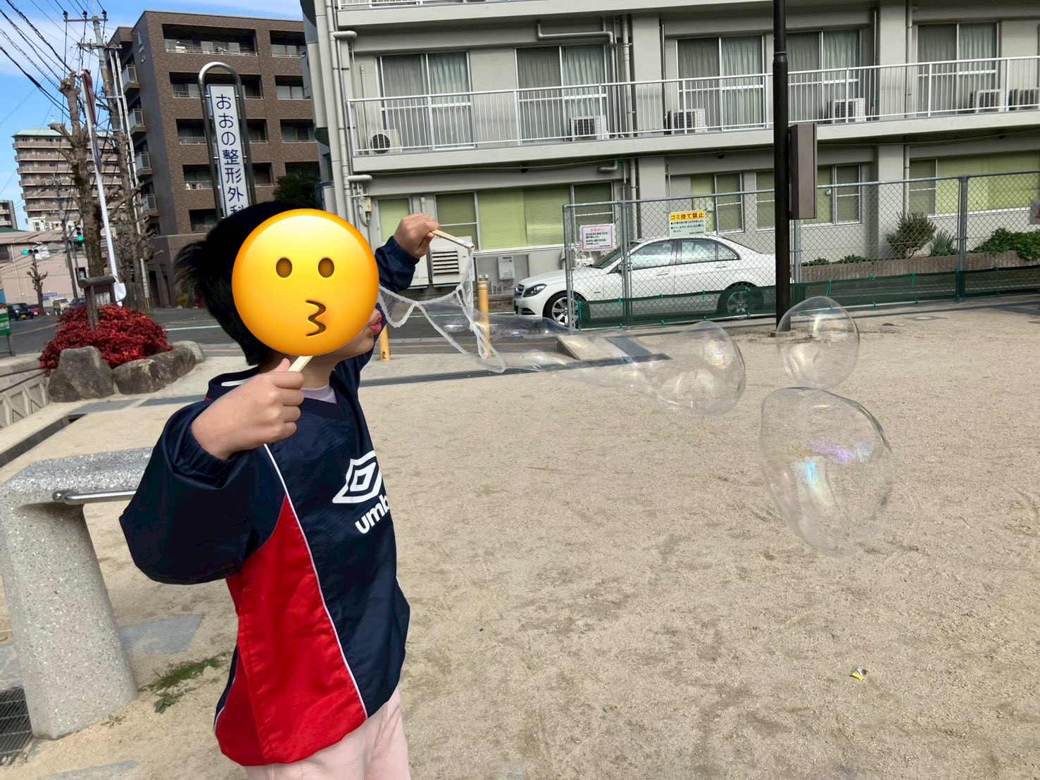 公園で駆け回って大小様々なシャボン玉を作りました♪