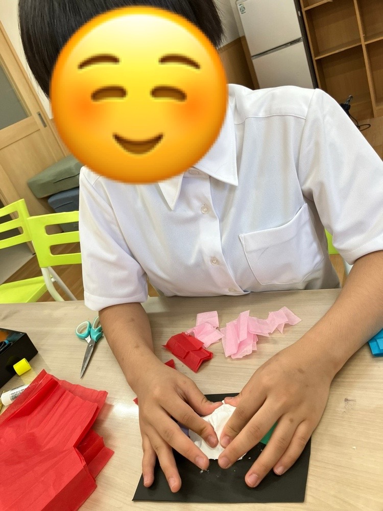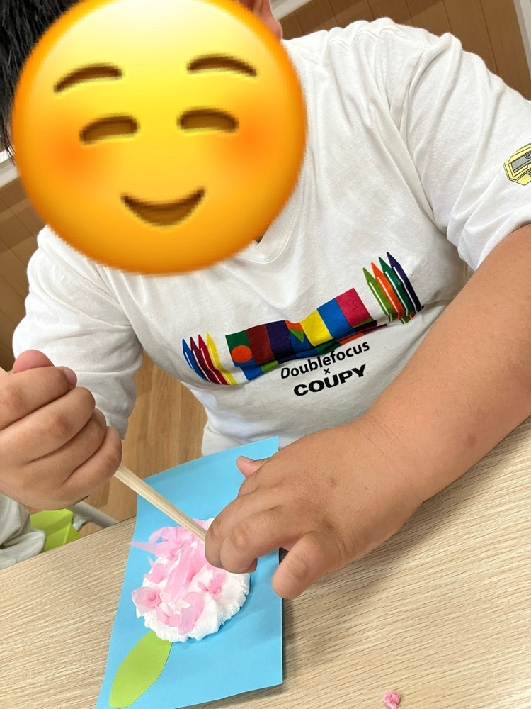 紙粘土の上で花紙を箸で押すことを繰り返し行うことで、皆素敵なあじさいを作ることができました🪷
