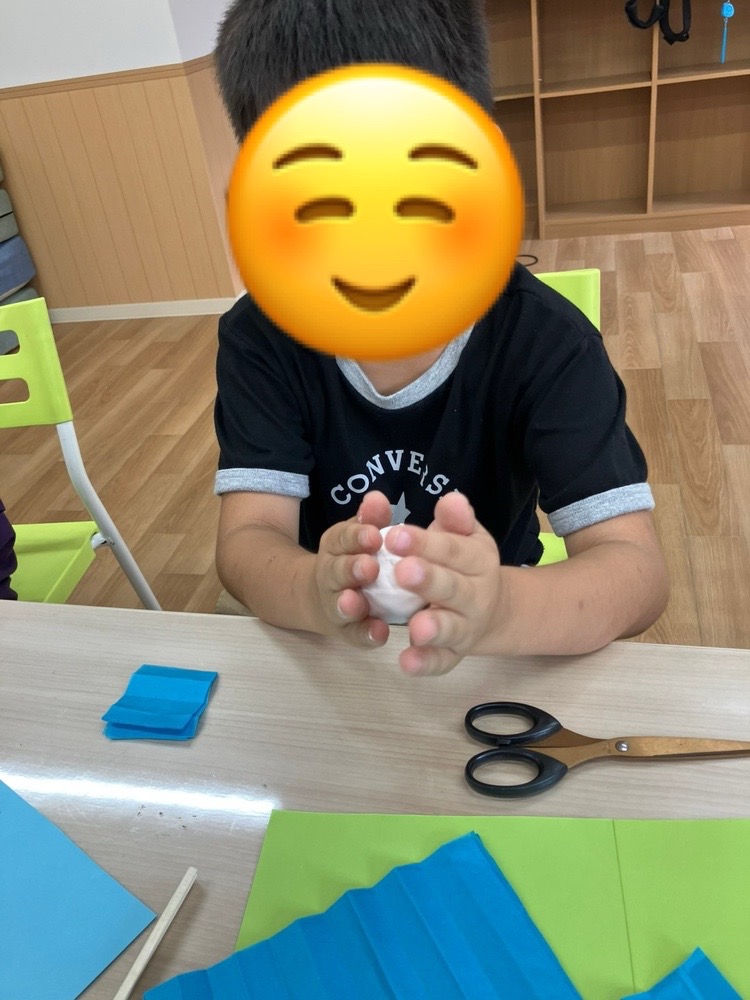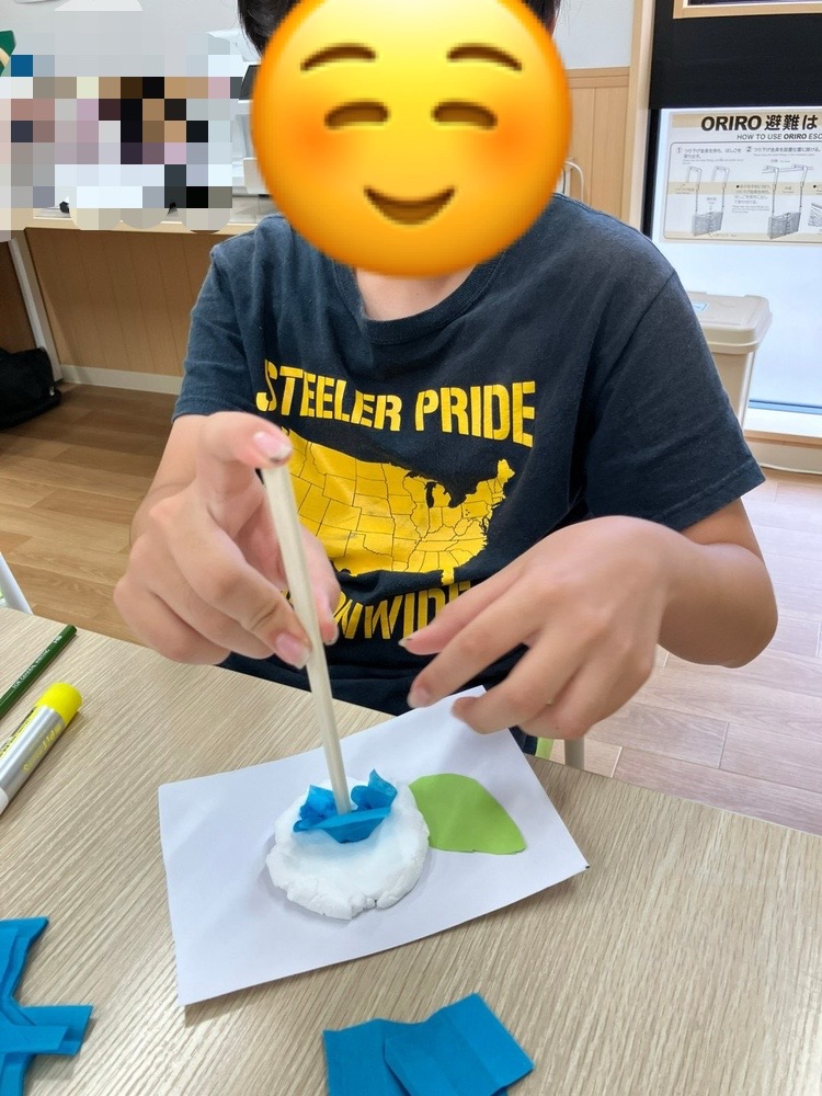 中には『臭い〜』と言い紙粘土を触ることが苦手なお子様もいましたが、全員取り組むことができ、普段なかなか触らないものに触れて脳の活性化や、刺激に繋がればと思います🌟
