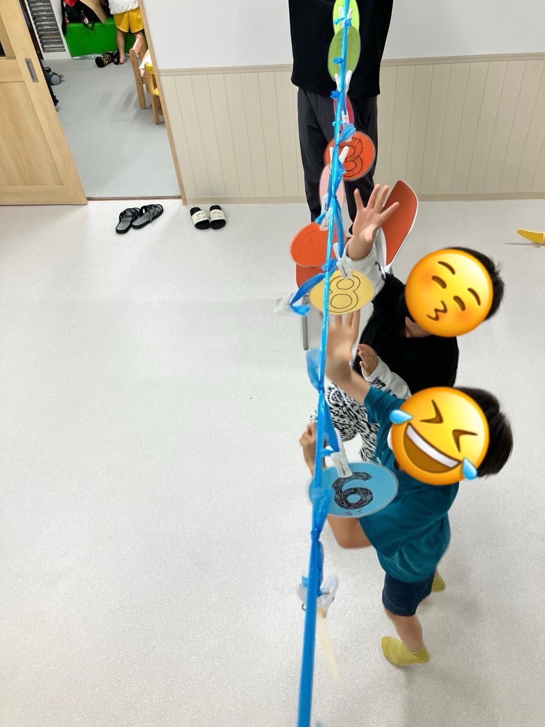 狙いを定めてジャンプをしてカードをとり、室内でも汗を書くほど楽しみながら体を動かしています💪🏻✨
