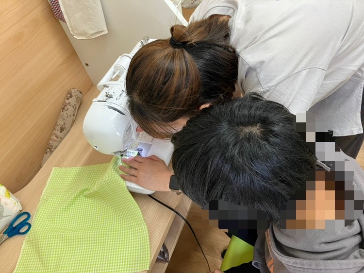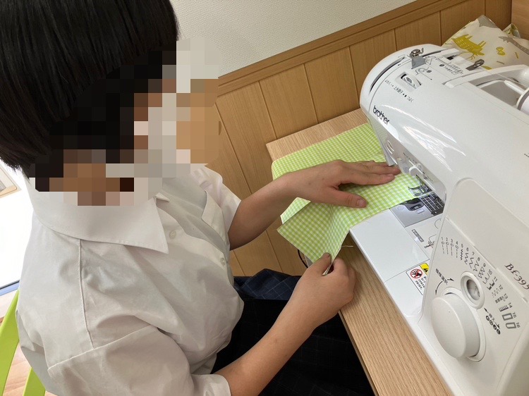 先日、ミシンを使って布を縫う活動をしています😊