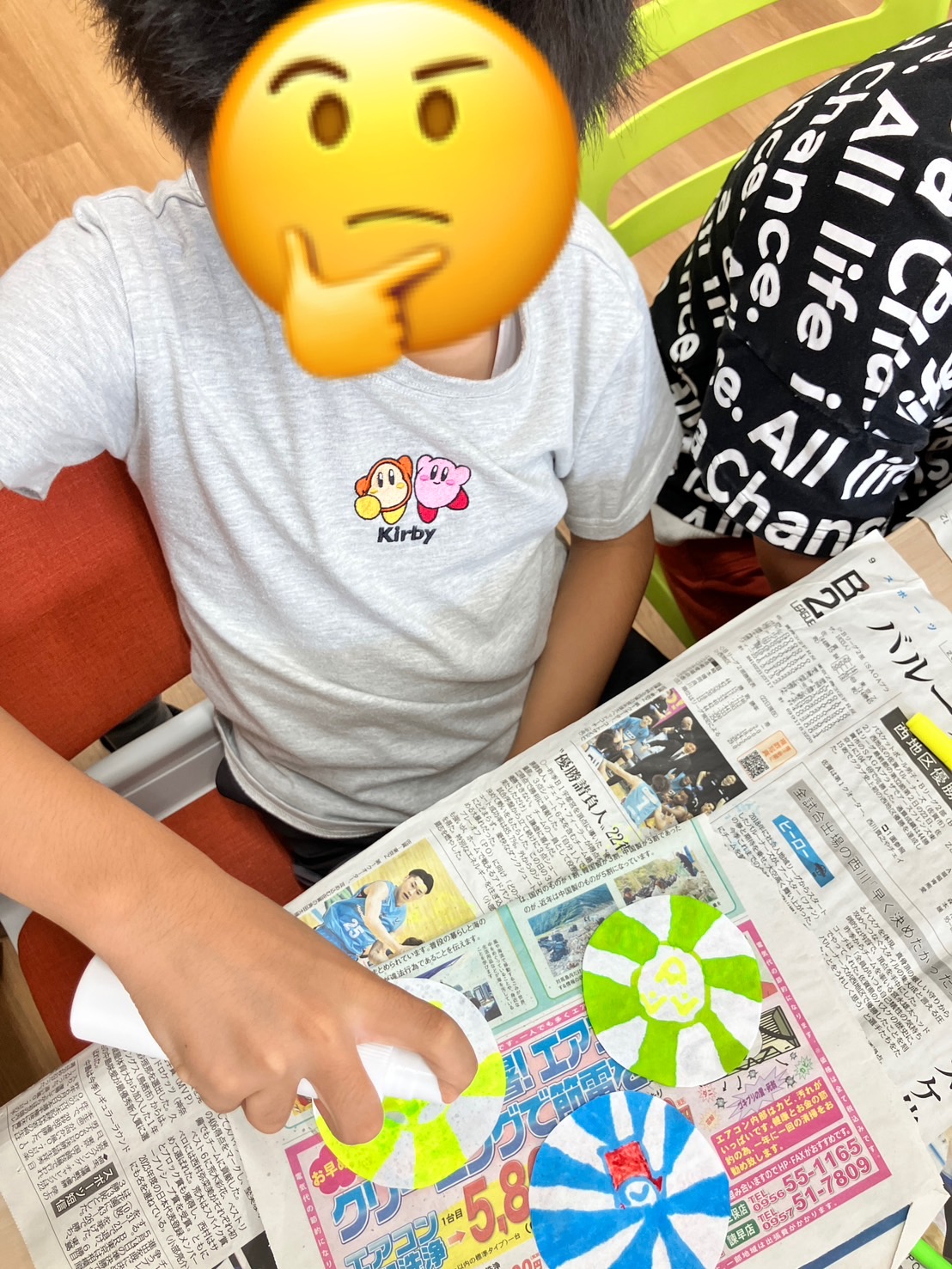 水がかかると滲んでいく、自分の絵をジーと見たり、時間が経ってから見て驚いたりと絵の変化を楽しむ事ができました♪