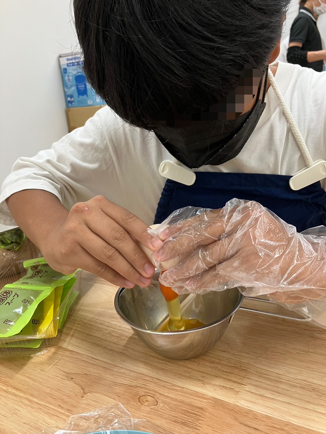 卵焼き班はまず卵を割る段階から行い、