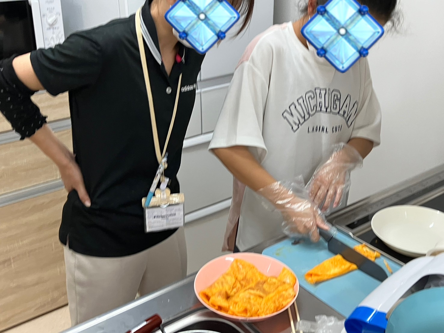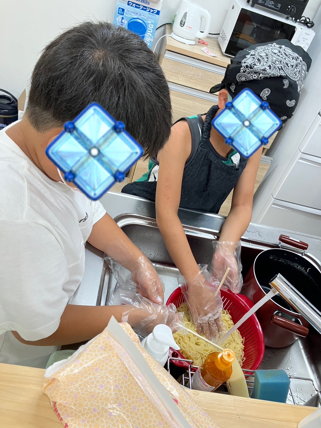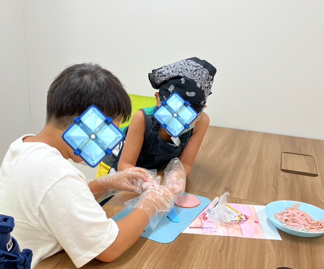 2️⃣ハムを切る+麺を茹でる班