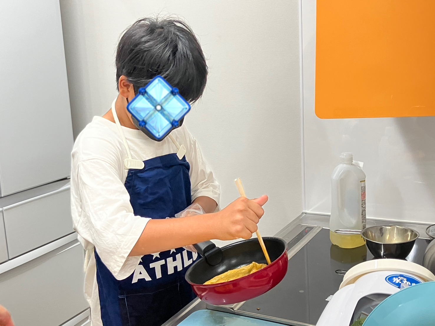 菜箸を使い慣れていない子はヘラで丸めました🥚🍳