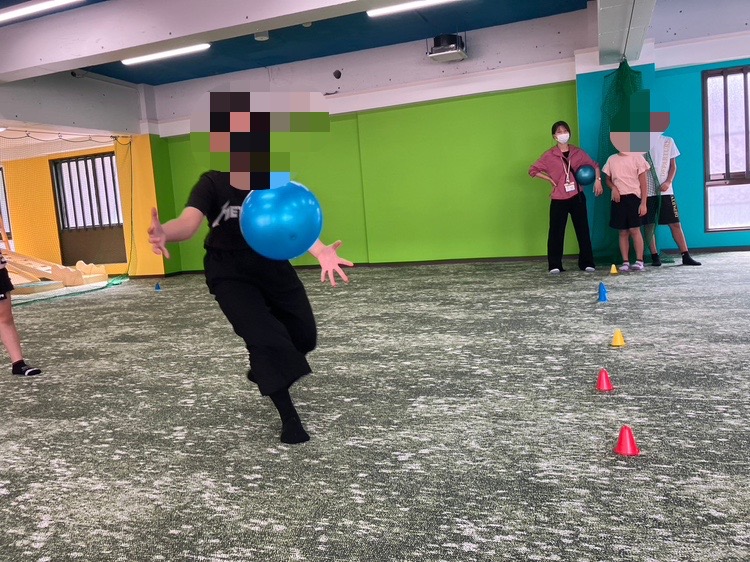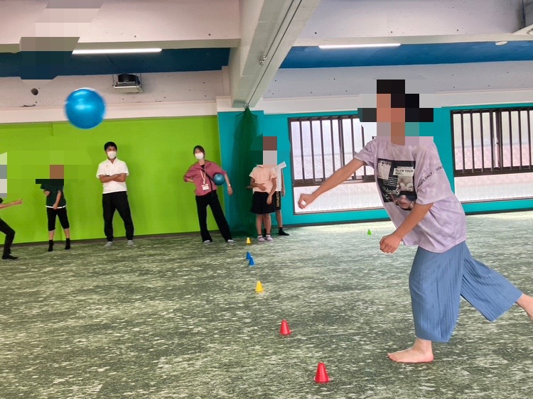 午前中は、3階の広いスペースを使って、2部屋合同でドッチボール対決をしております✌️