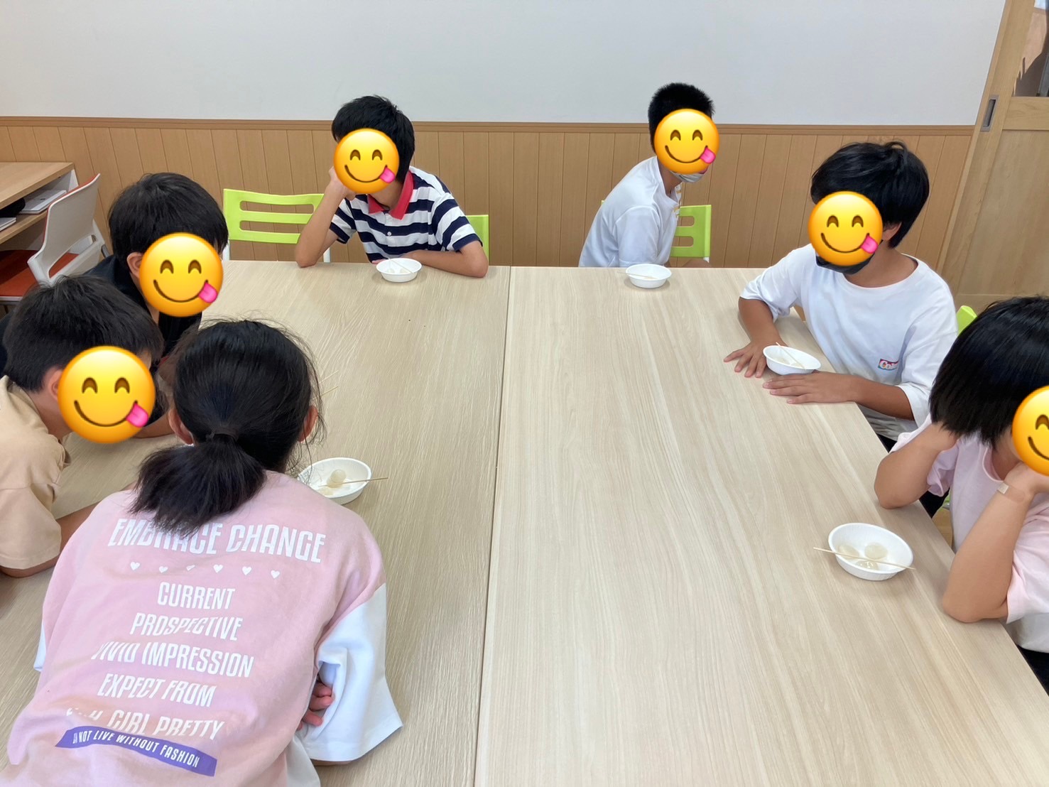 本日は『月見団子を作ろう!』ということで、団子を作った後に月曜日・火曜日で製作を行った月で月見をしながら食べました😋