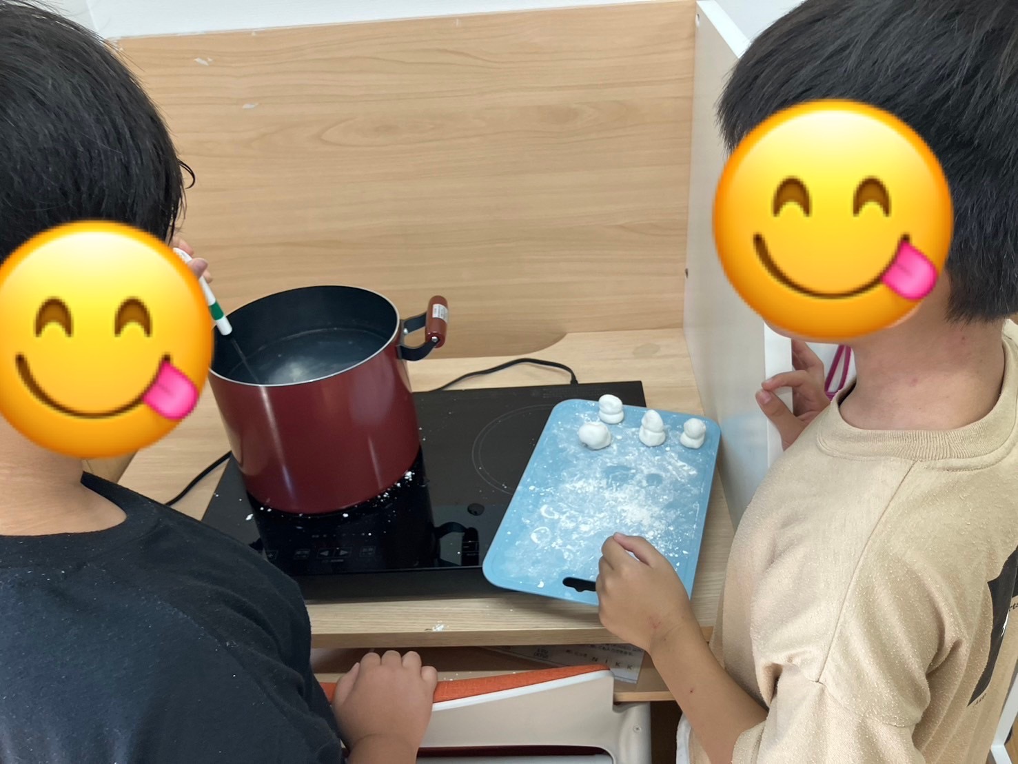 粘土のような感触が苦手ということでこねる作業に参加できなかった子には、茹でる担当をしてもらいました🍲💭