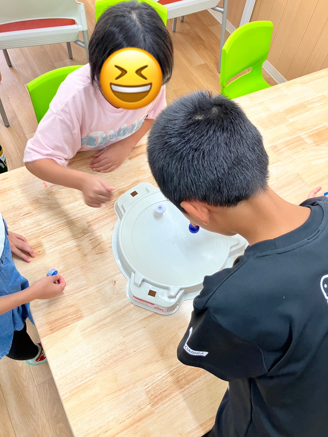 コマが完成するとすぐに回して遊びましたが、勝ったり負けたりと楽しそうに取り組みました😊