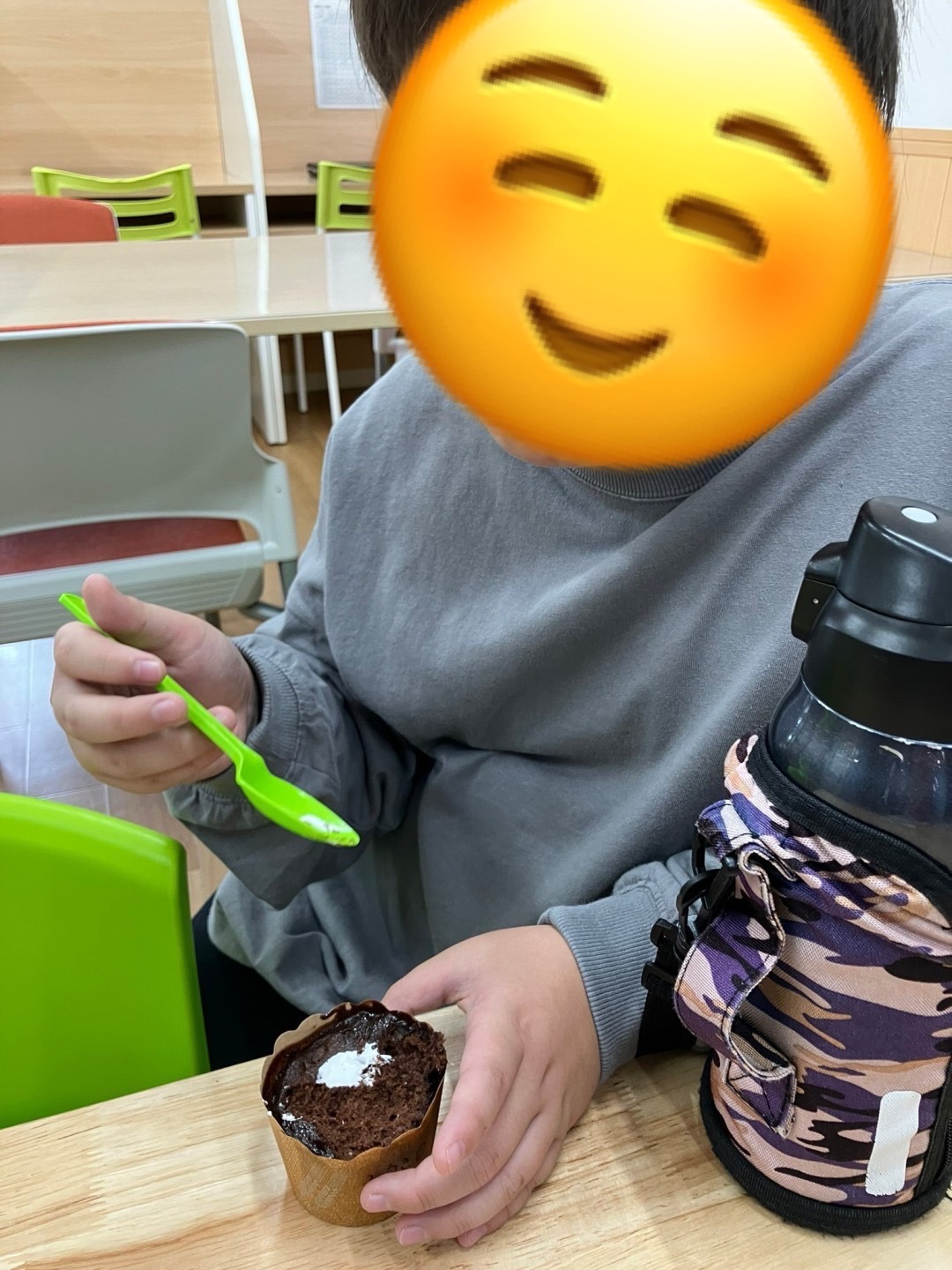 ハロウィンカップケーキということで、マシュマロを乗せてチョコレートでお化けのお顔を書いて、おやつとして食べました😋