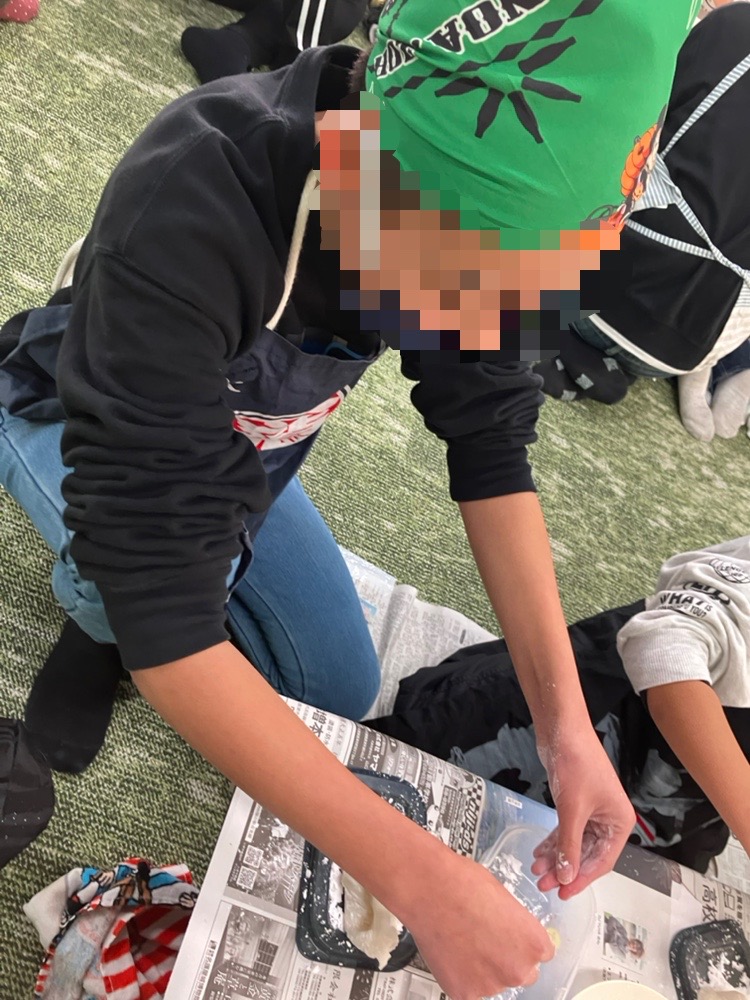 出来立てのおもちをみんな上手に丸めることができ、きなこや砂糖醤油で食べました✨
