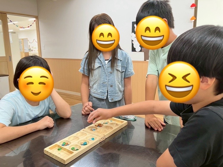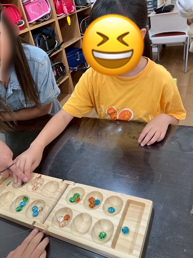 回数を重ねるうちに、相手に勝つために戦略を立てたりしながら、次一緒にやろう!!と声をかけ合いながら意欲的に取り組んでおりました☝️大人も子どもも夢中になれるマンカラ遊びでした😊🍀🙇🏻♀️