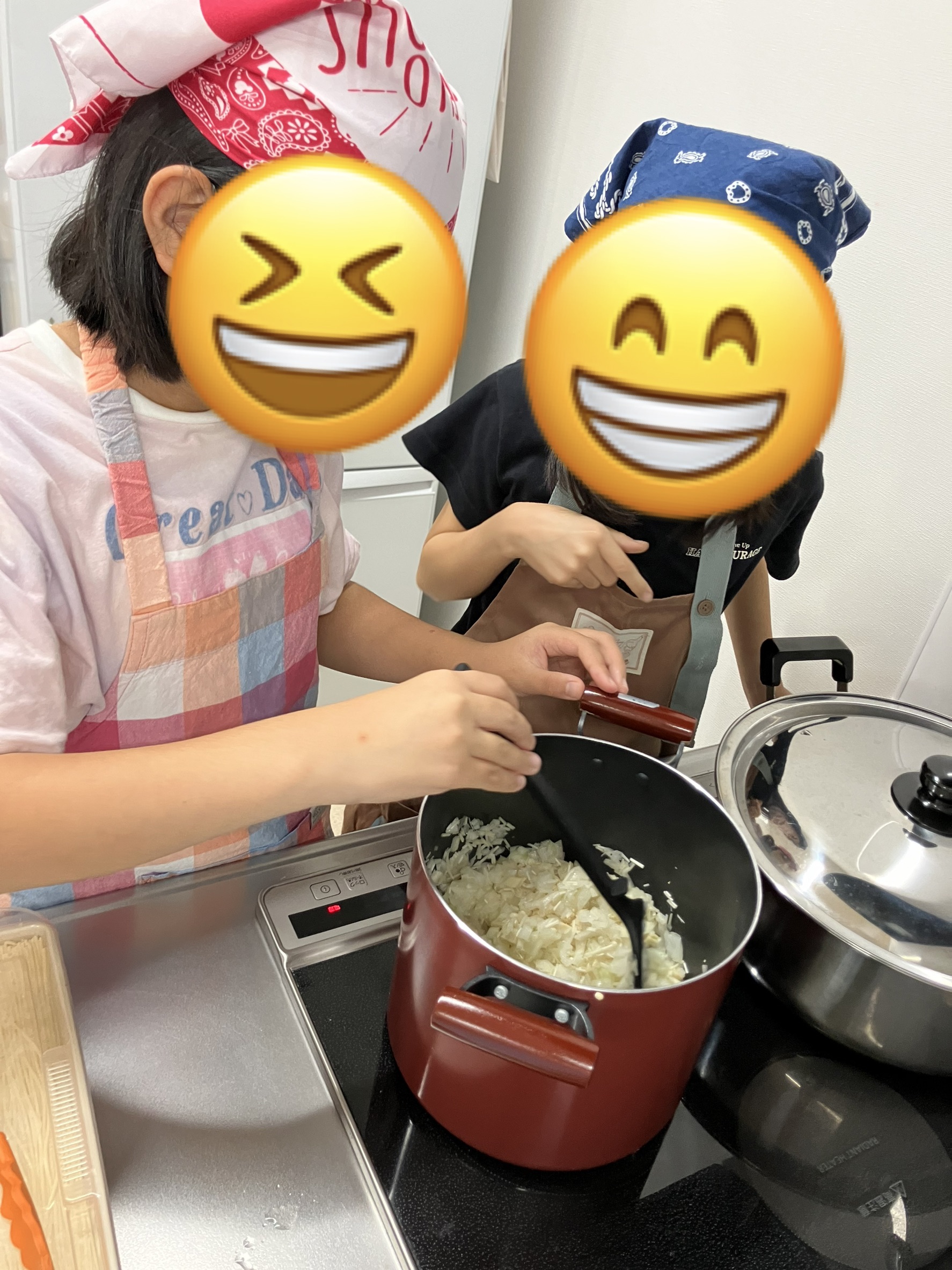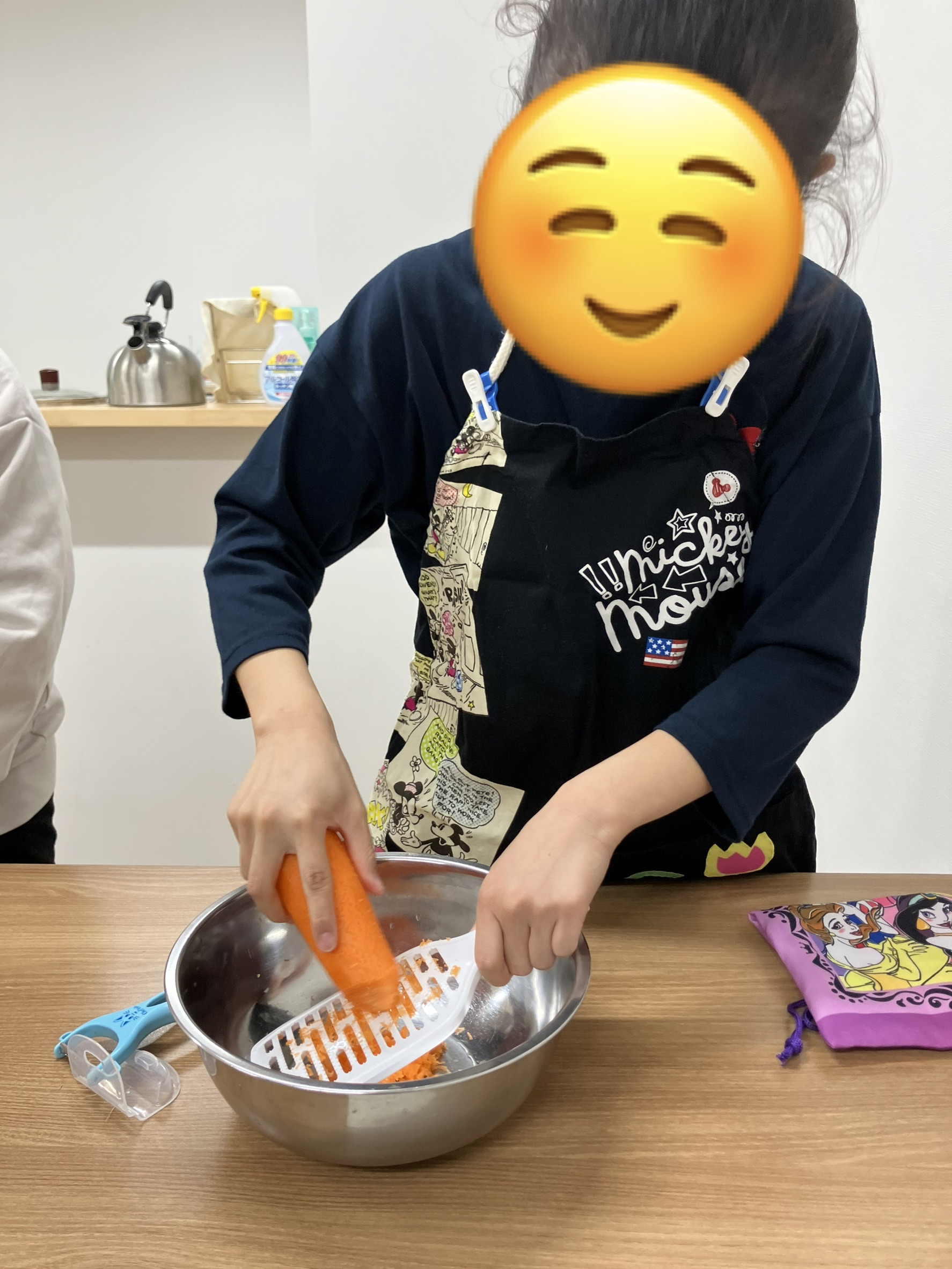 玉ねぎを切る時に目に染みて涙を流しながらも最後まで責任を持って頑張っています!