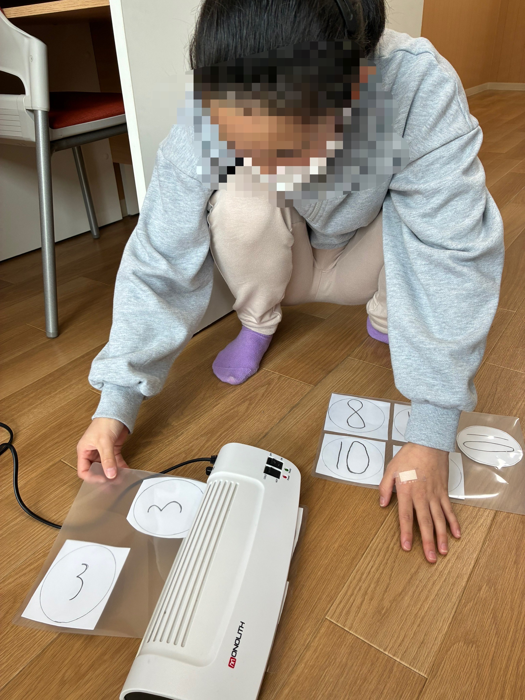 カードの形や数字を書く、ラミネート、切るなどさまざまな作業を皆で分担し、完成させた後遊びを楽しみました😊