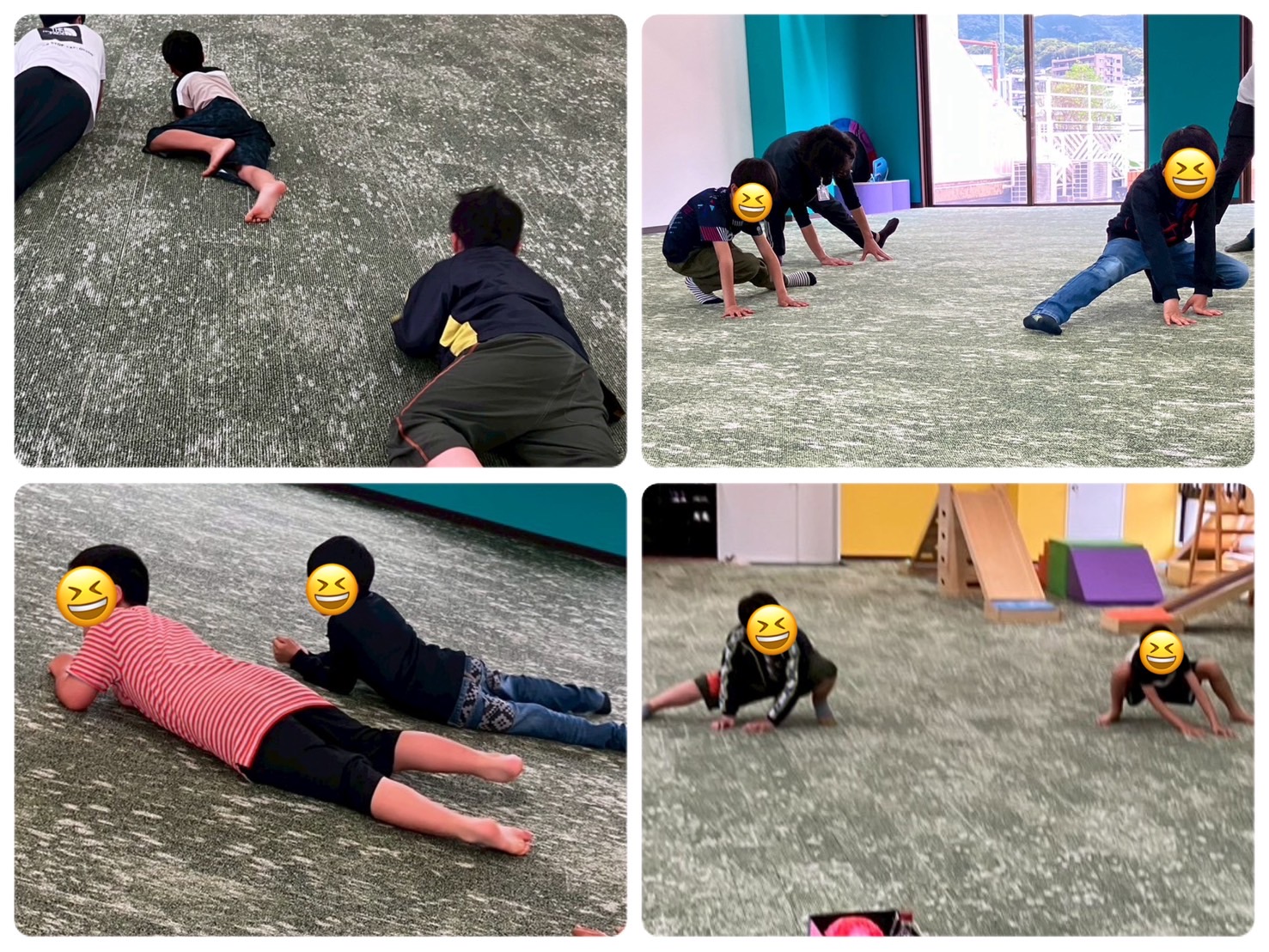 足元にある自分の色の目標物をほふく前進でゲットしていくものになります!