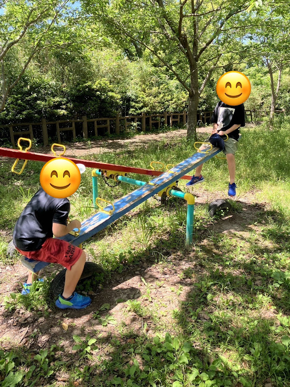 また、公園に設置されてあるステージでは、戦いごっこを楽しむお友達も見られました✨