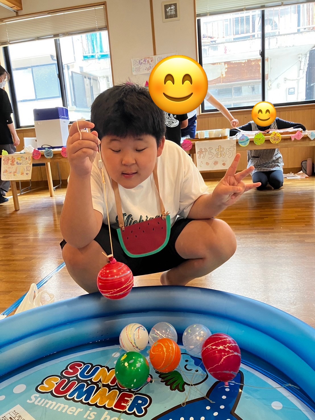 ゲームコーナーでは写真コーナー・射的・輪投げ・ヨーヨー釣り・金魚&スーパーボールすくいがあり順番をしっかり守って、ルールを頭に入れて行動することができました👏