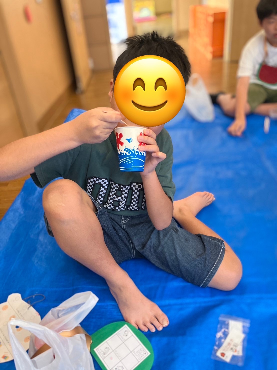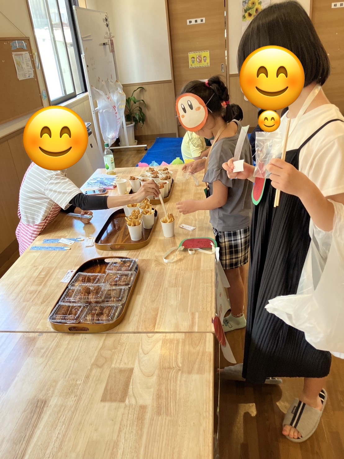 食事は唐揚げ、たこ焼き、ポテト、かき氷とたくさんの種類があり、「普段食べるのと違ってとても美味しい!」と大好評でした😋