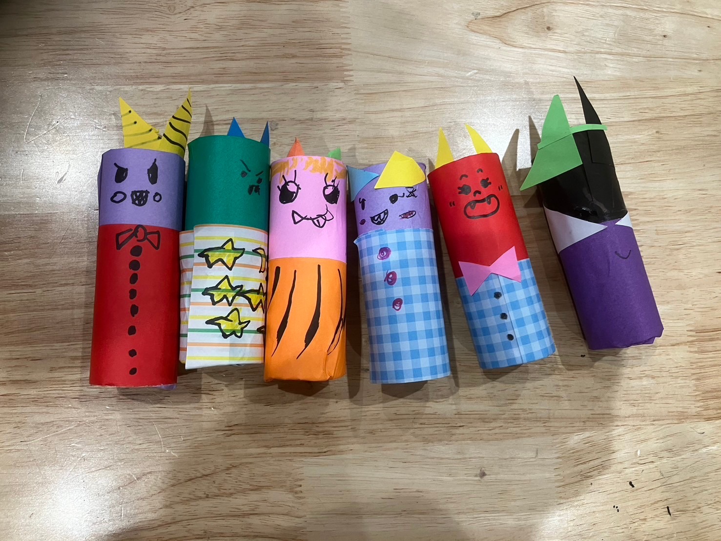 こんにちは!あじさい茂木です✨ もうすぐ節分ですね👹 創作余暇活動では「節分の飾り作り」を行いました。 トイレットペーパーの芯をベースに折り紙、画用紙、ペン、のりなどを使って オリジナルの「鬼」を完成させることができています😊 かわいらしい鬼や、怖い顔の鬼など、それぞれ個性あふれる素敵な作品が沢山ですね✨