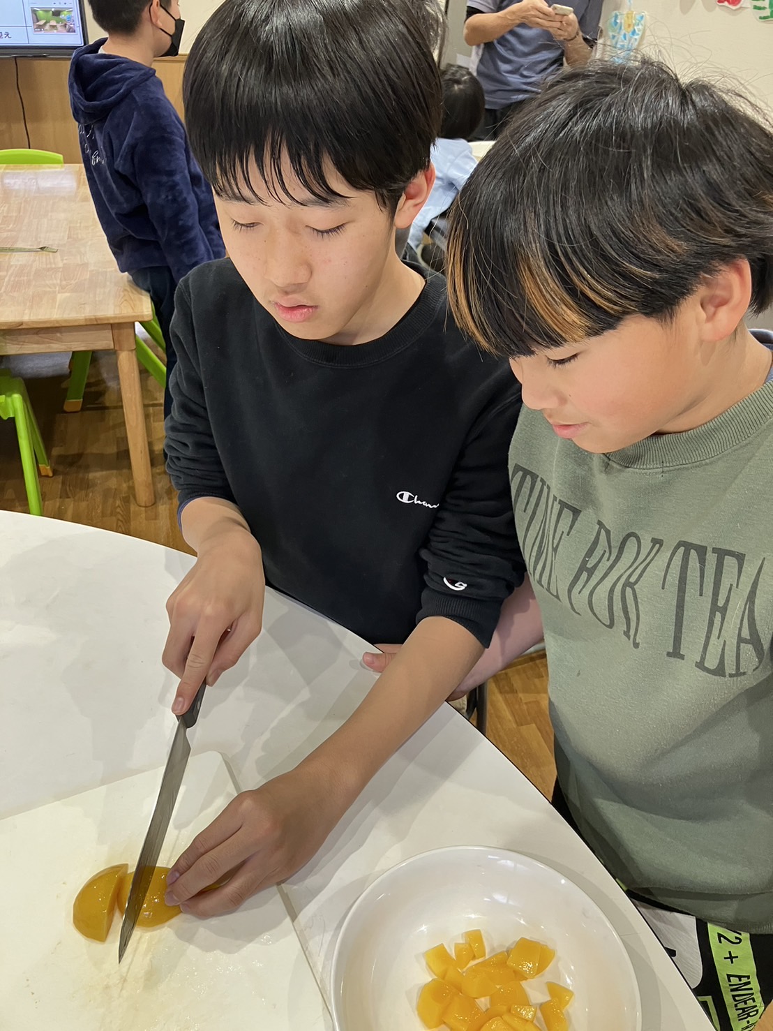 美味しいクレープを想像しながらみんな真剣に取り組み、完成したクレープはお昼ご飯のデザートとして美味しくいただきました😋