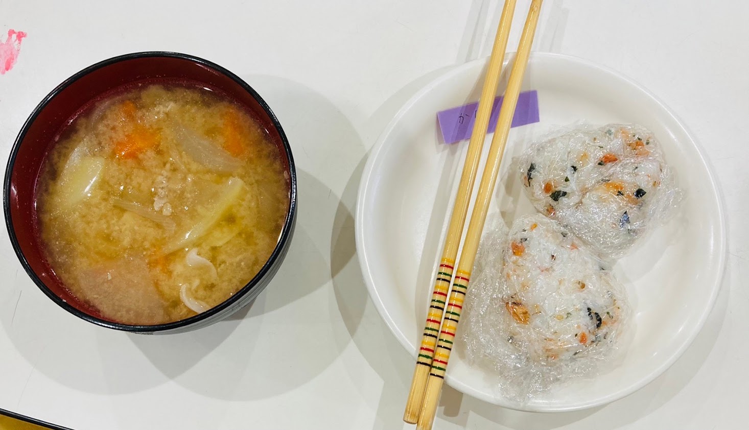 今日は、クッキングで「おにぎり」と「豚汁」を作りました。