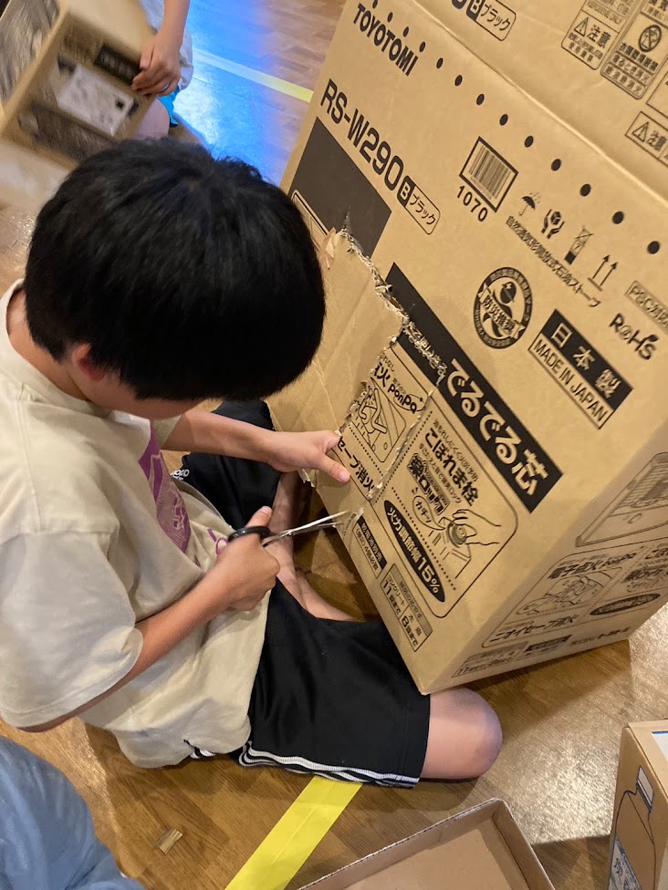 先日の雨の日は段ボール、ペーパークラフト、折り紙に分かれて工作を行いました☻