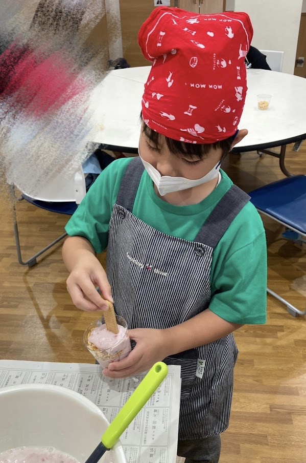 午前中に3つの工程を分担して行い、美味しそうなフルーチェが出来上がりました☆