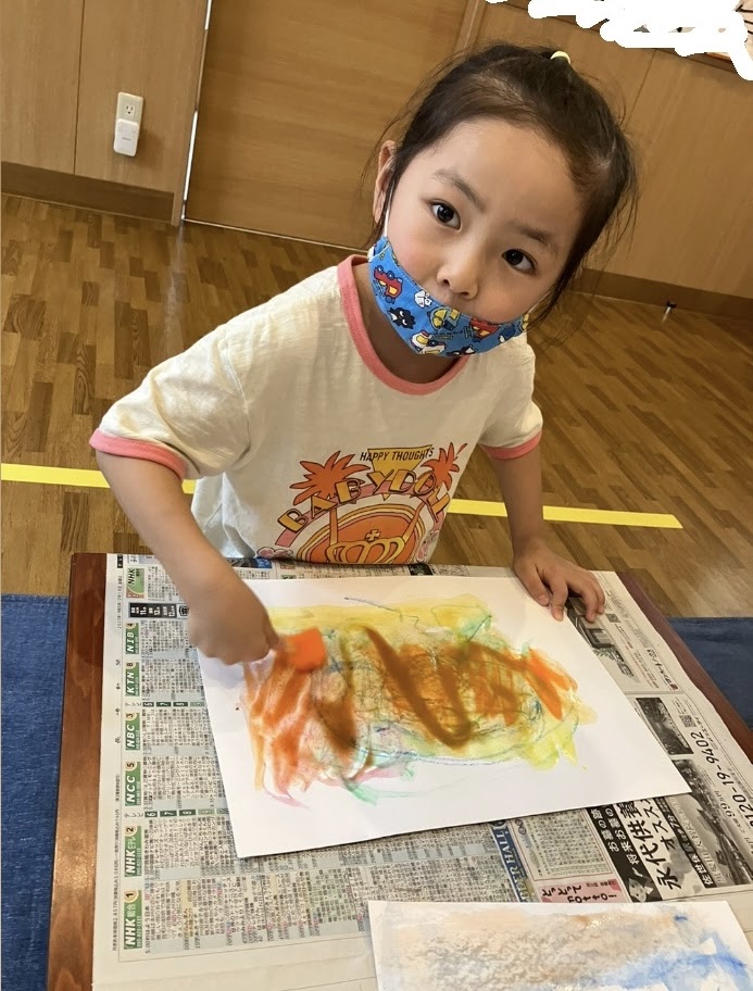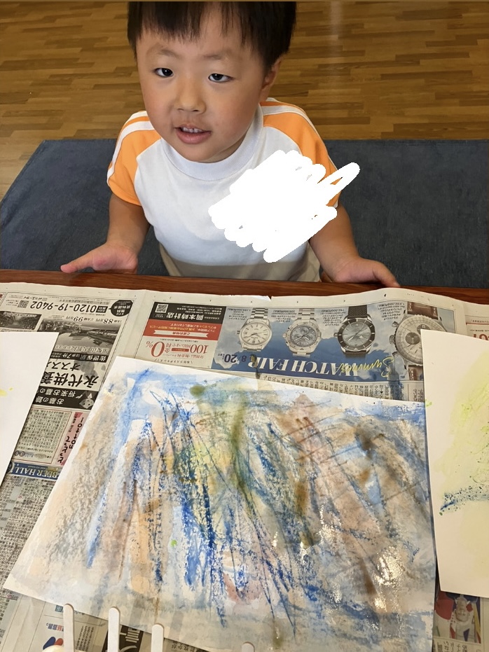 氷が溶けるごとに絵のタッチが変わり、「クレヨンみたい!」、「今度は水になったよ!」と子どもたちもその変化に驚いていました⛄
